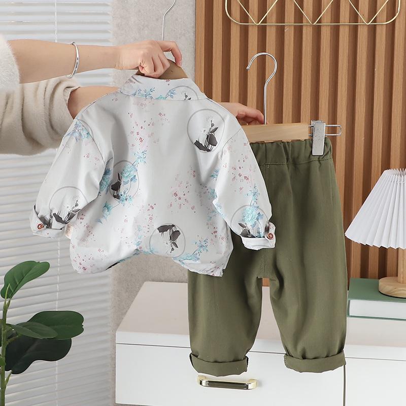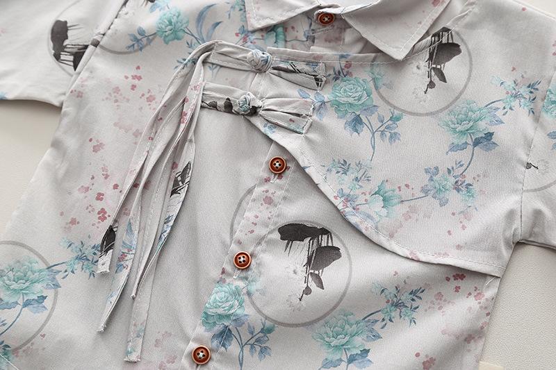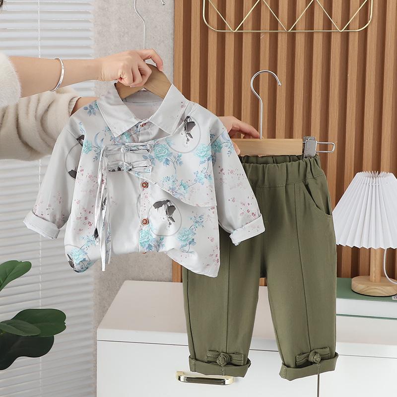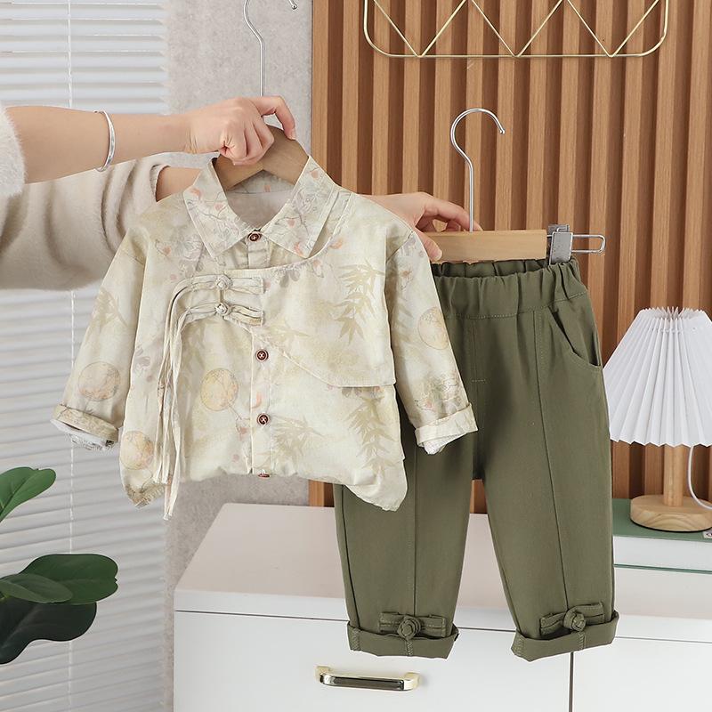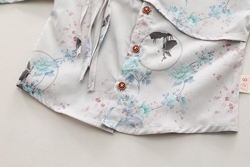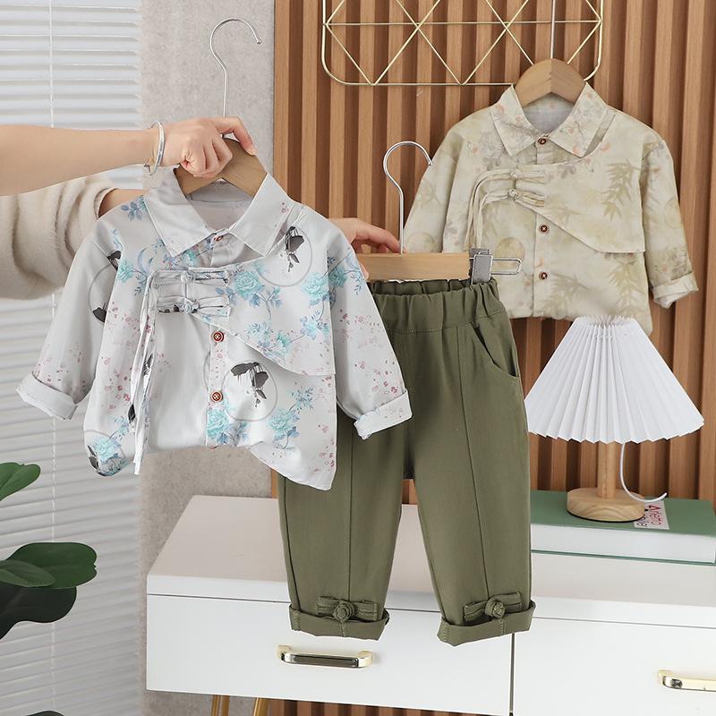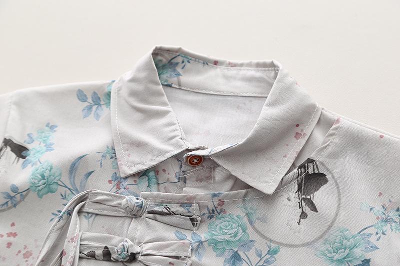 2024 nova camisa infantil manga comprida estilo nacional lapela masculina e feminina verão estilo coreano de duas peças fonte fábrica atacado