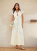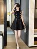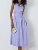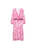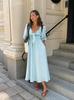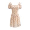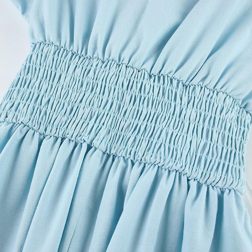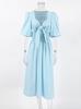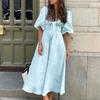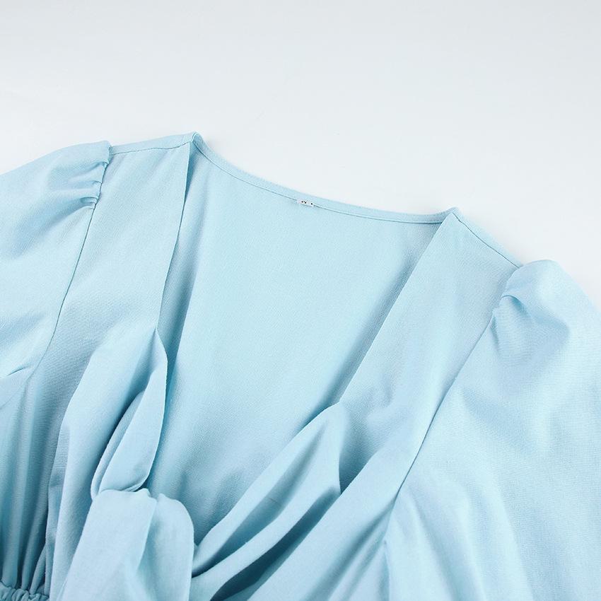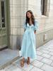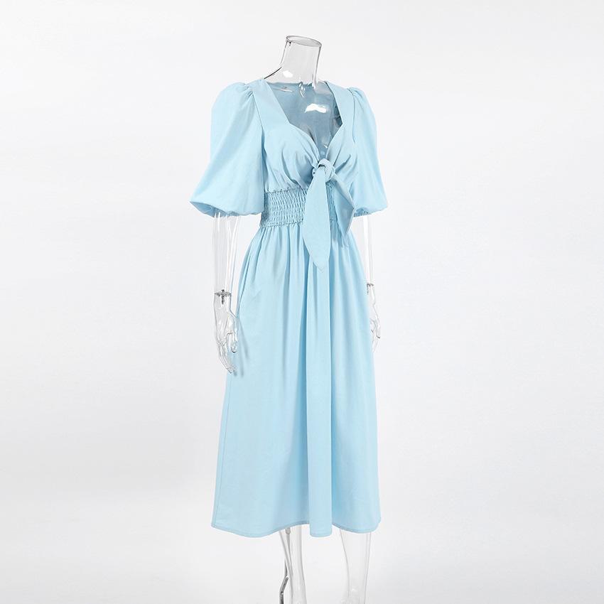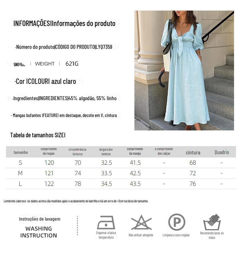 Vestido francês com decote em V e manga bolha, primavera e verão 2025, temperamento, cintura, casual, transfronteiriço, para trabalho, saia em linha A