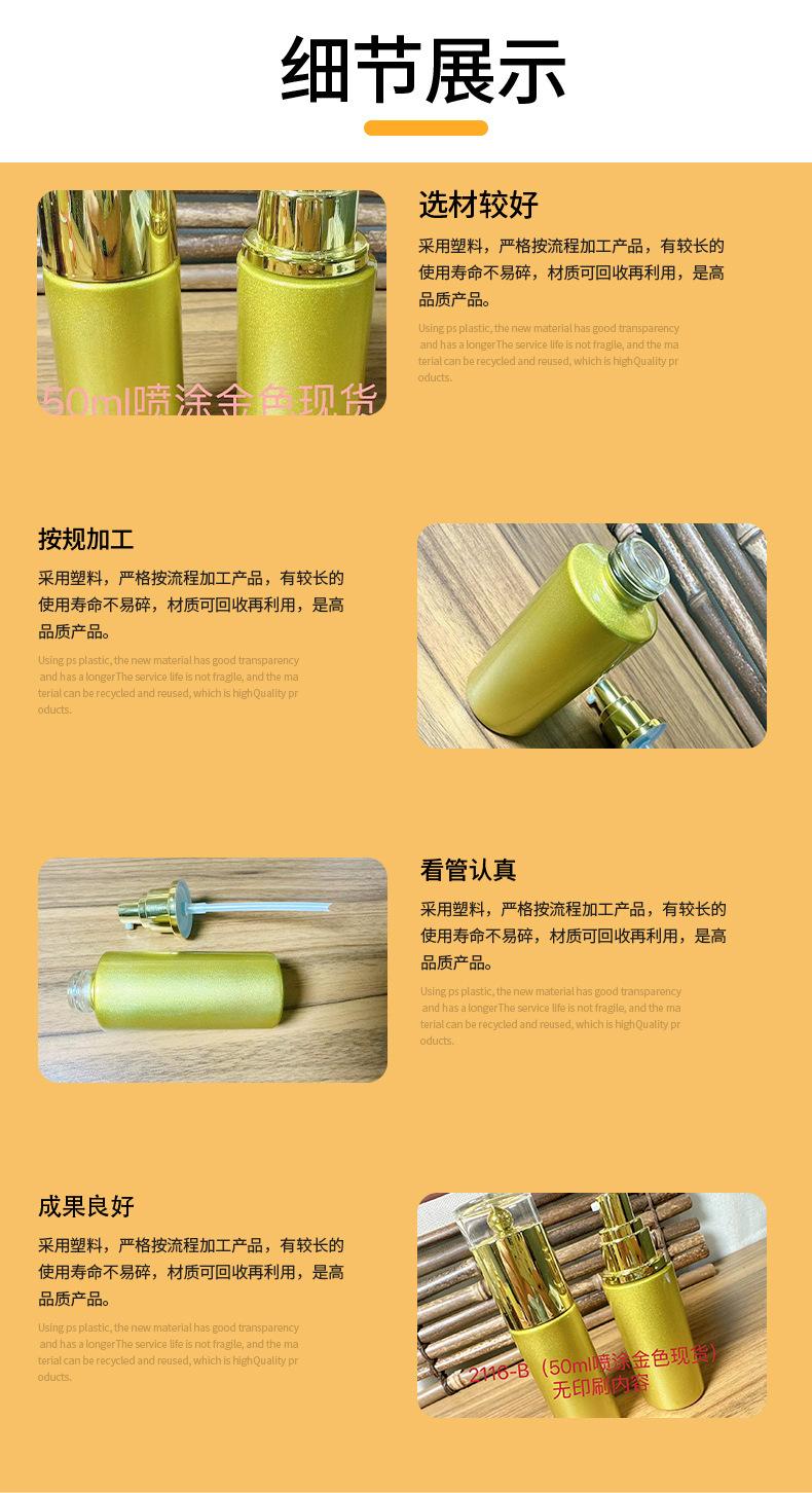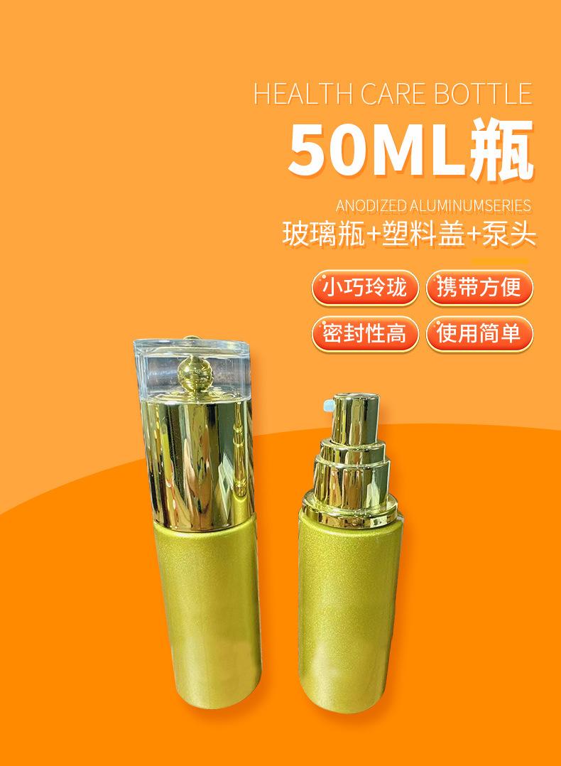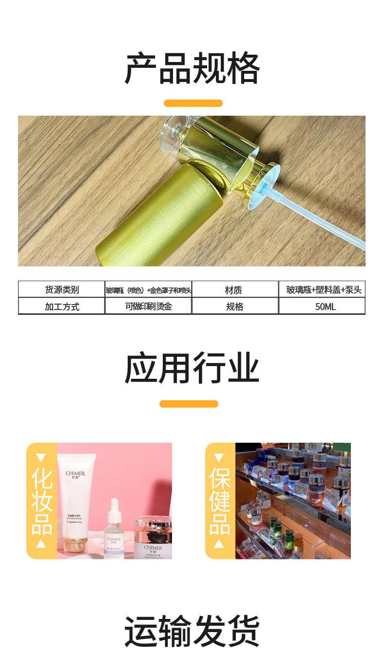 50ml imprensa loção bomba cabeça garrafa de vidro banhado a ouro sub-embalagem cosmético spray frasco atacado
