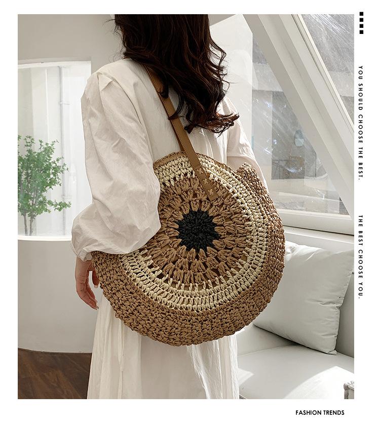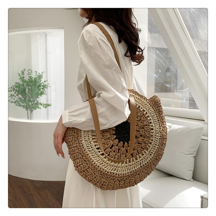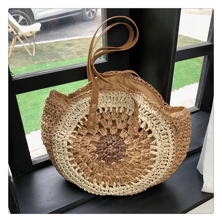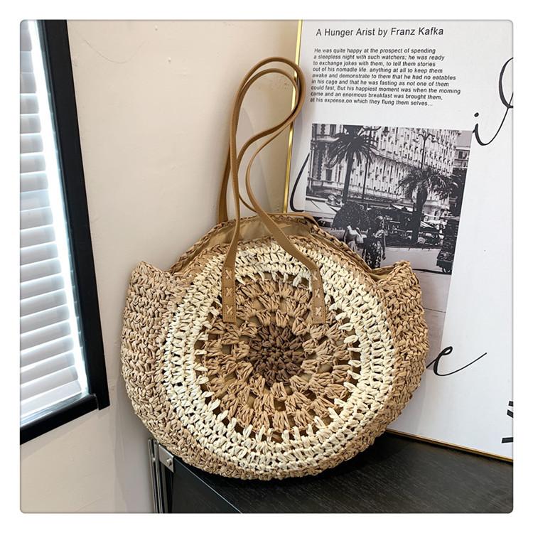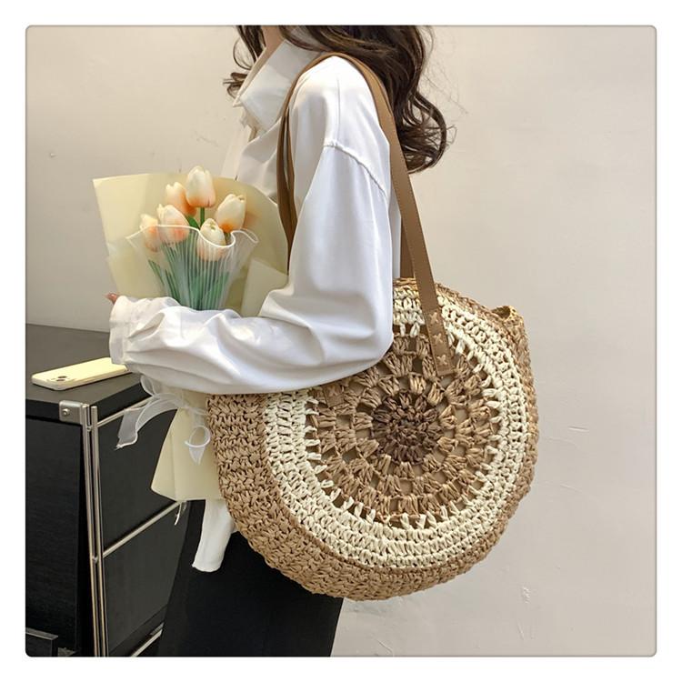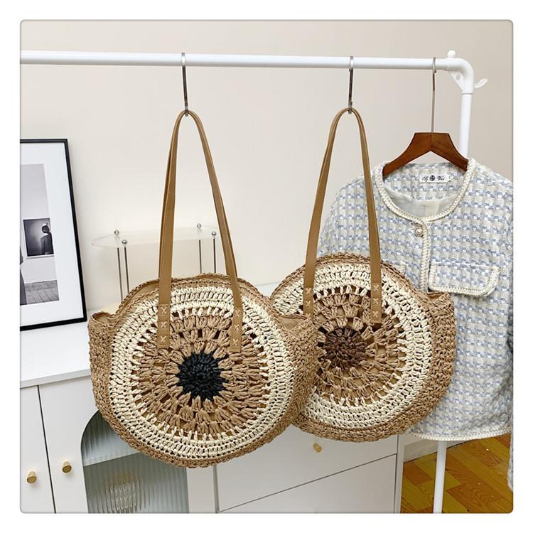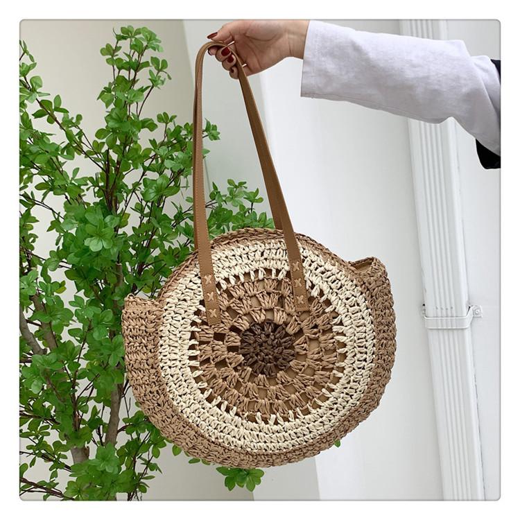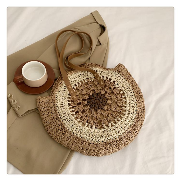 Nova chegada redonda handmade ombro palha saco tecido verão simples moda saco tecido férias lazer praia saco de mulheres