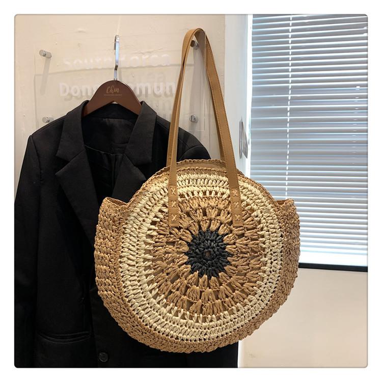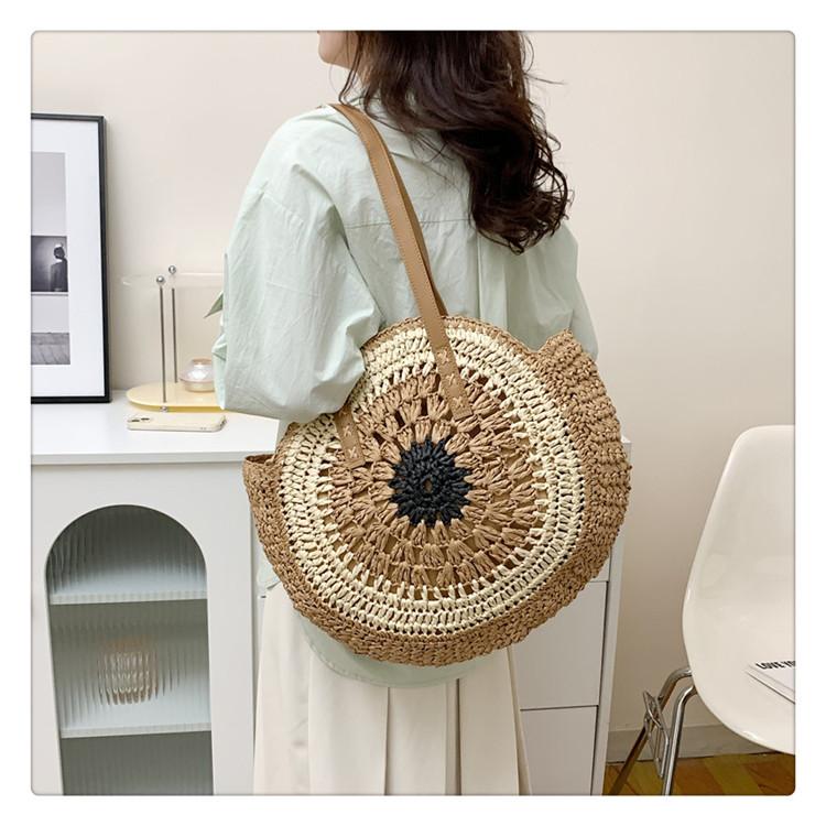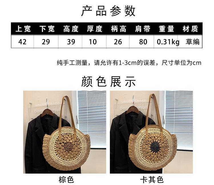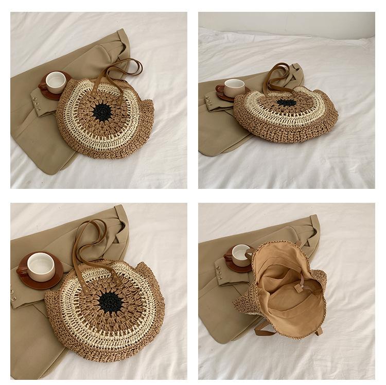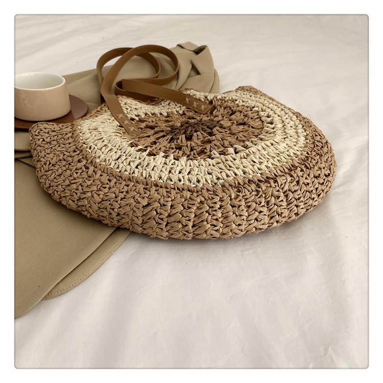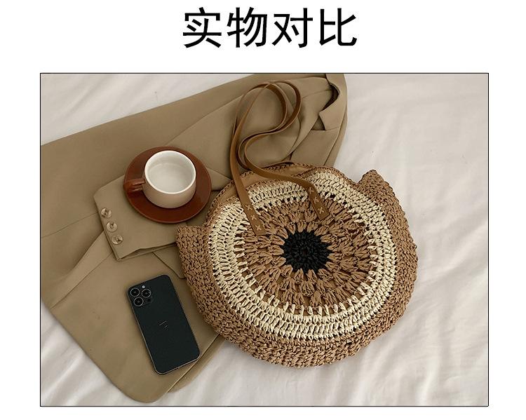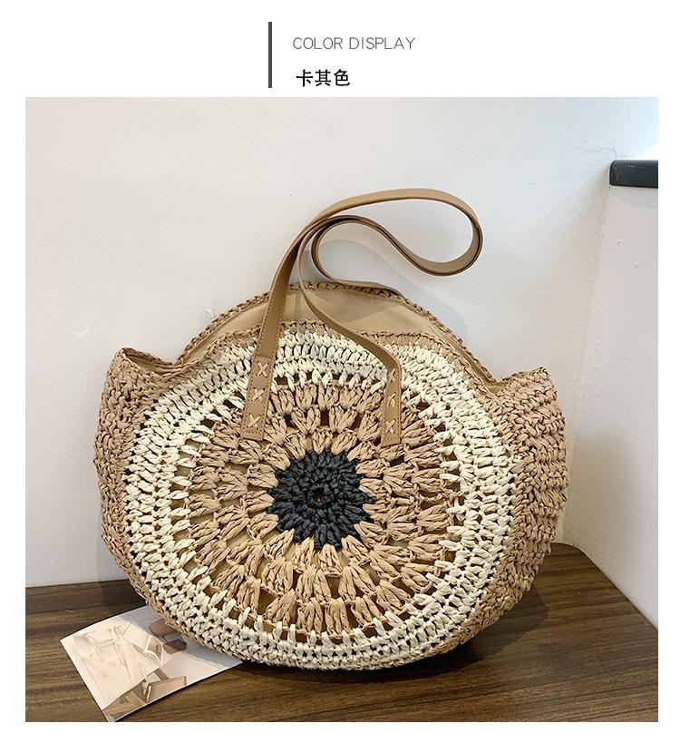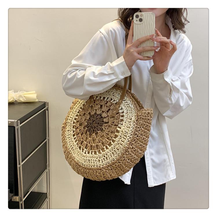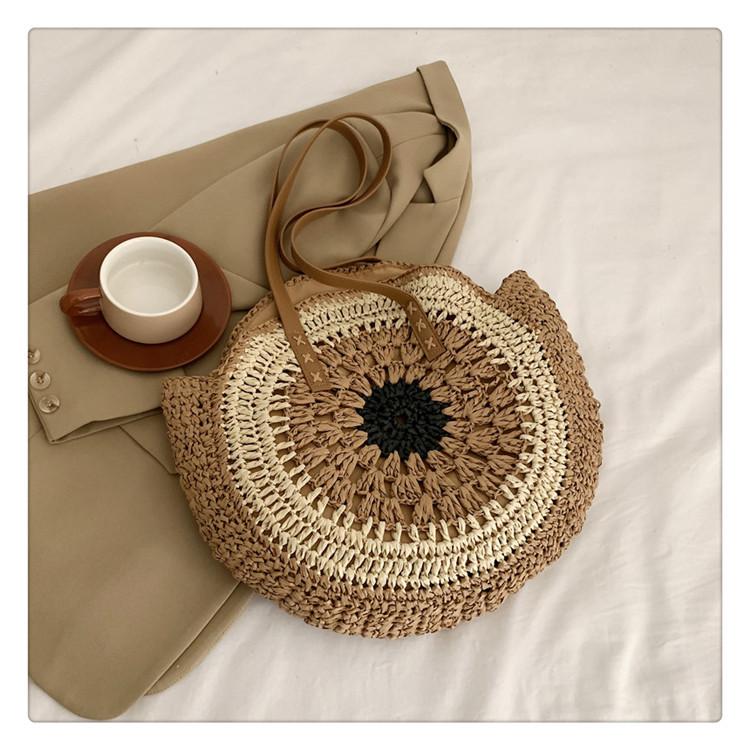 Nova chegada redonda handmade ombro palha saco tecido verão simples moda saco tecido férias lazer praia saco de mulheres