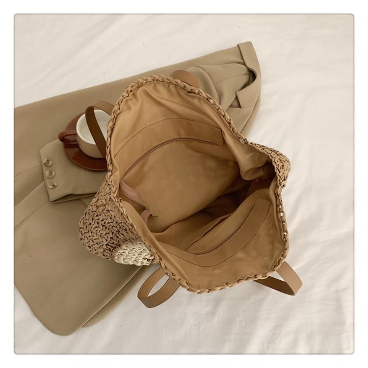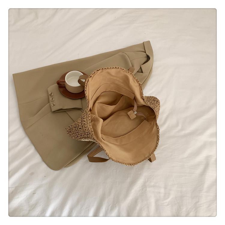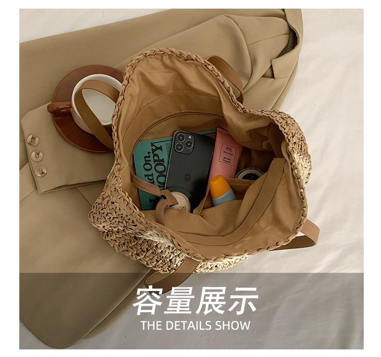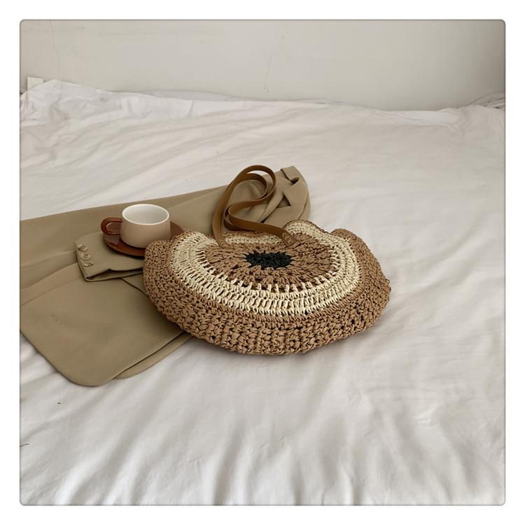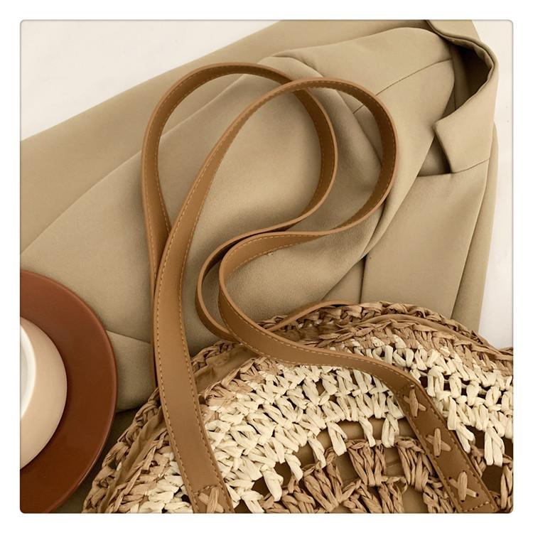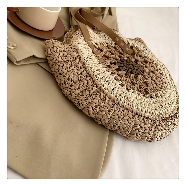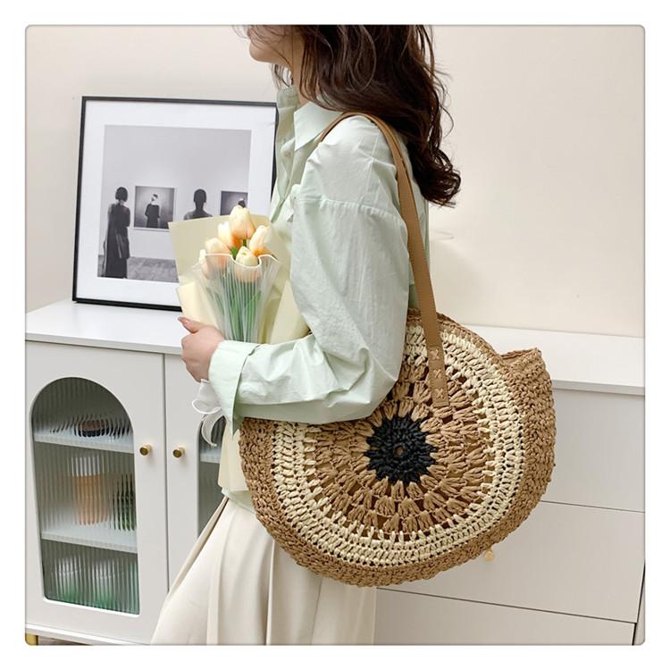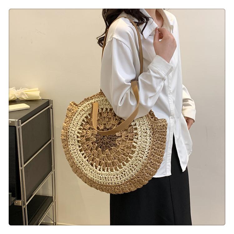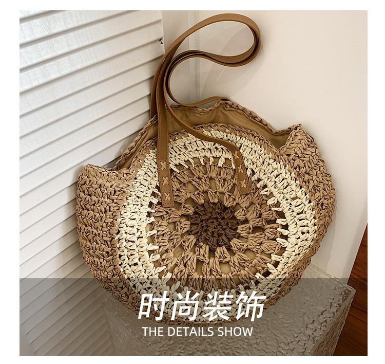 Nova chegada redonda handmade ombro palha saco tecido verão simples moda saco tecido férias lazer praia saco de mulheres