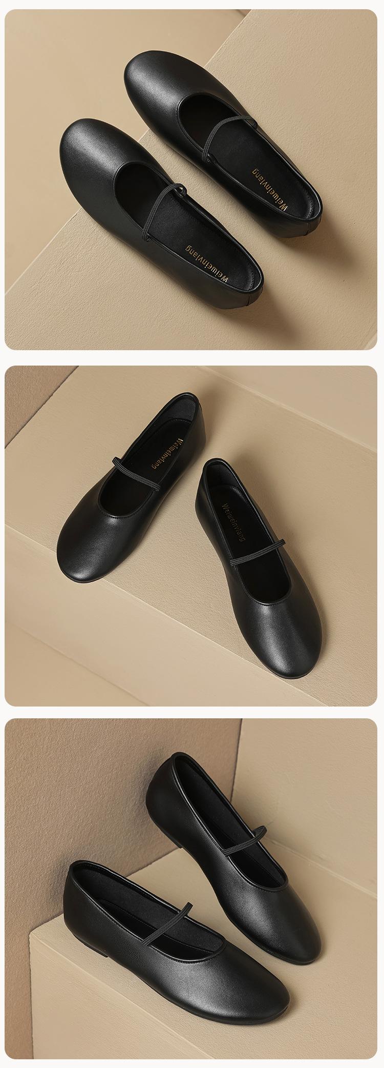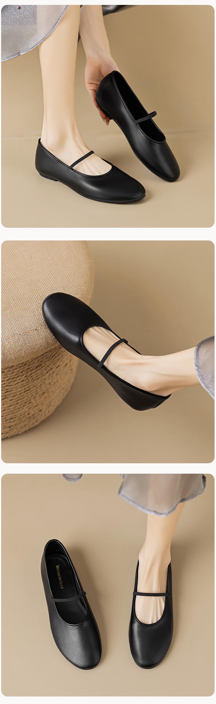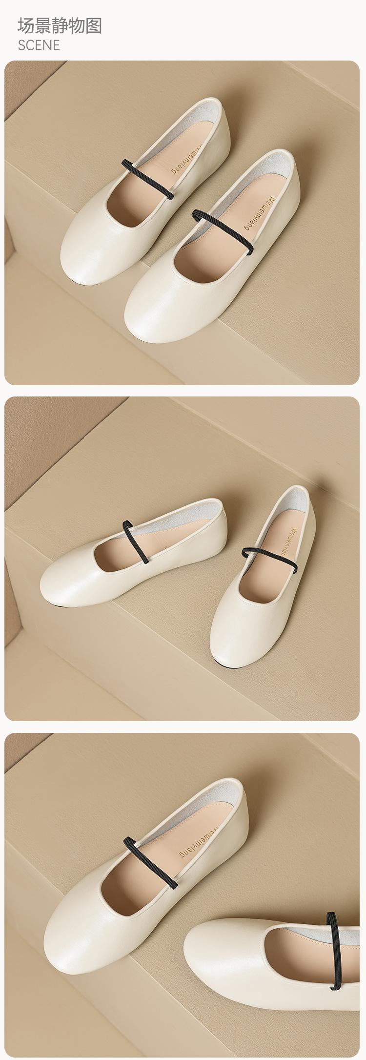 Weiwei Girl 626-1 Sapatos de balé Sapatos franceses de couro macio das mulheres com sapatos de leite Mary Jane Sapatos de tamanho grande