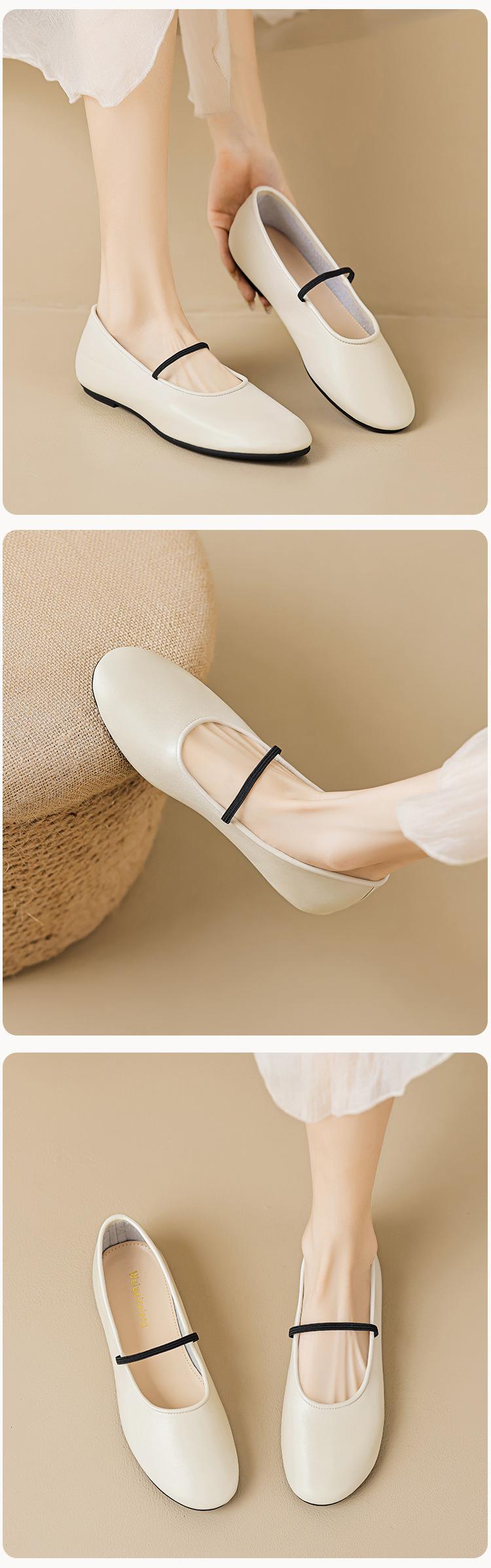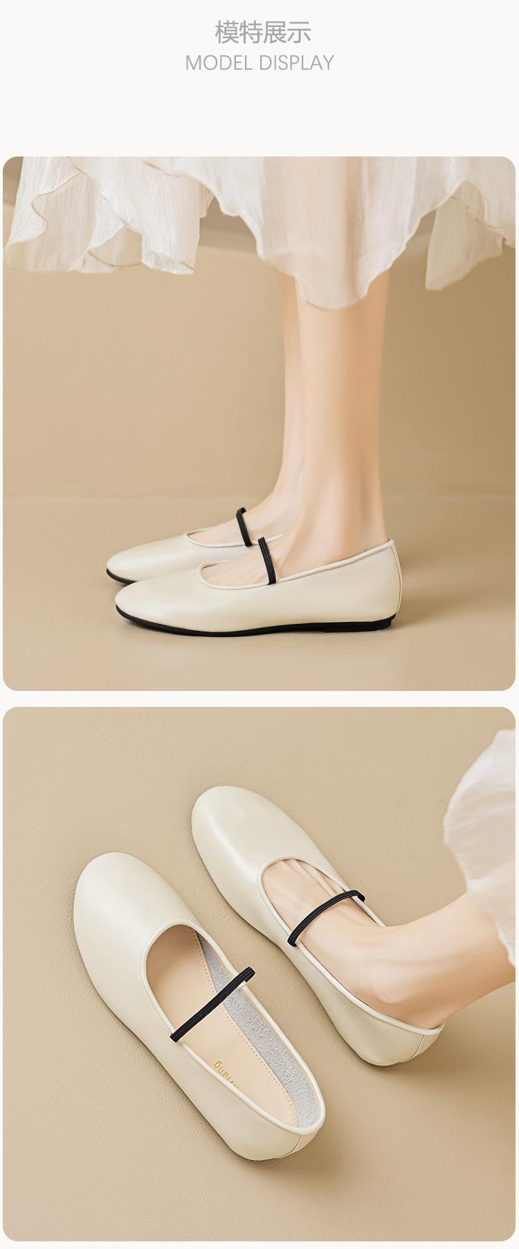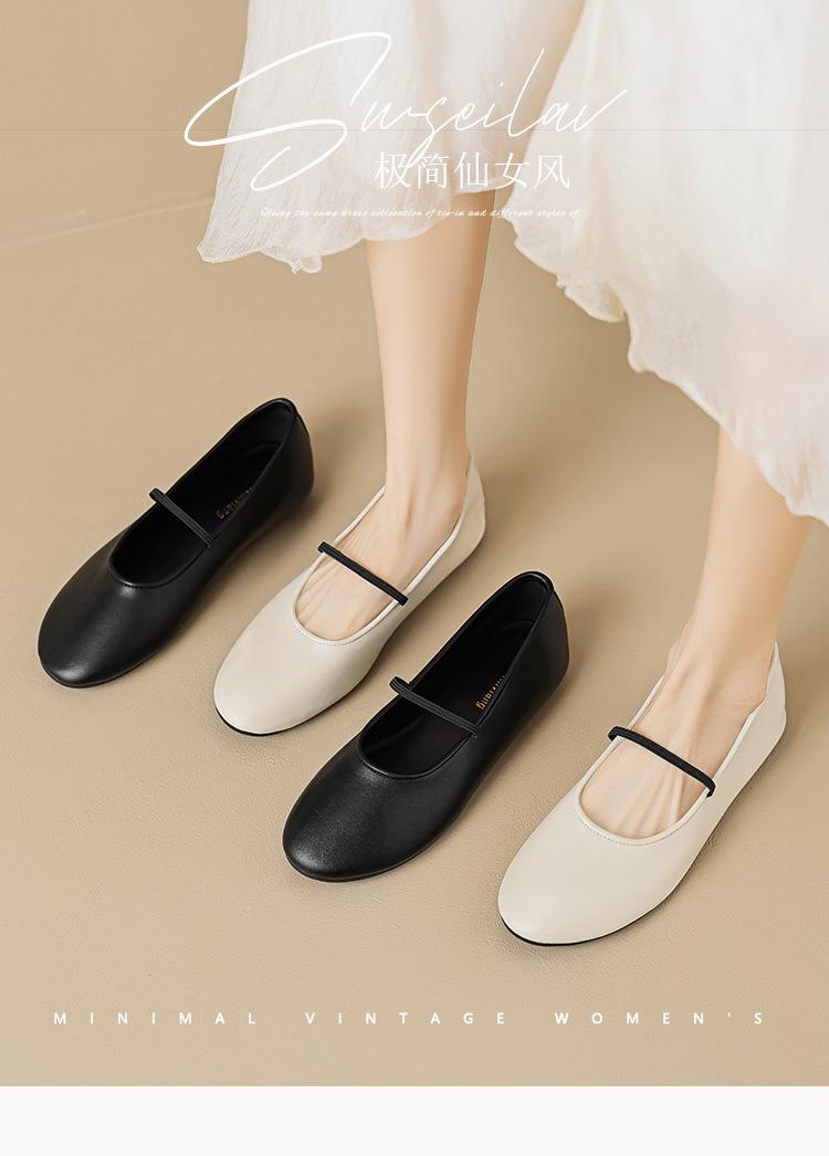 Weiwei Girl 626-1 Sapatos de balé Sapatos franceses de couro macio das mulheres com sapatos de leite Mary Jane Sapatos de tamanho grande