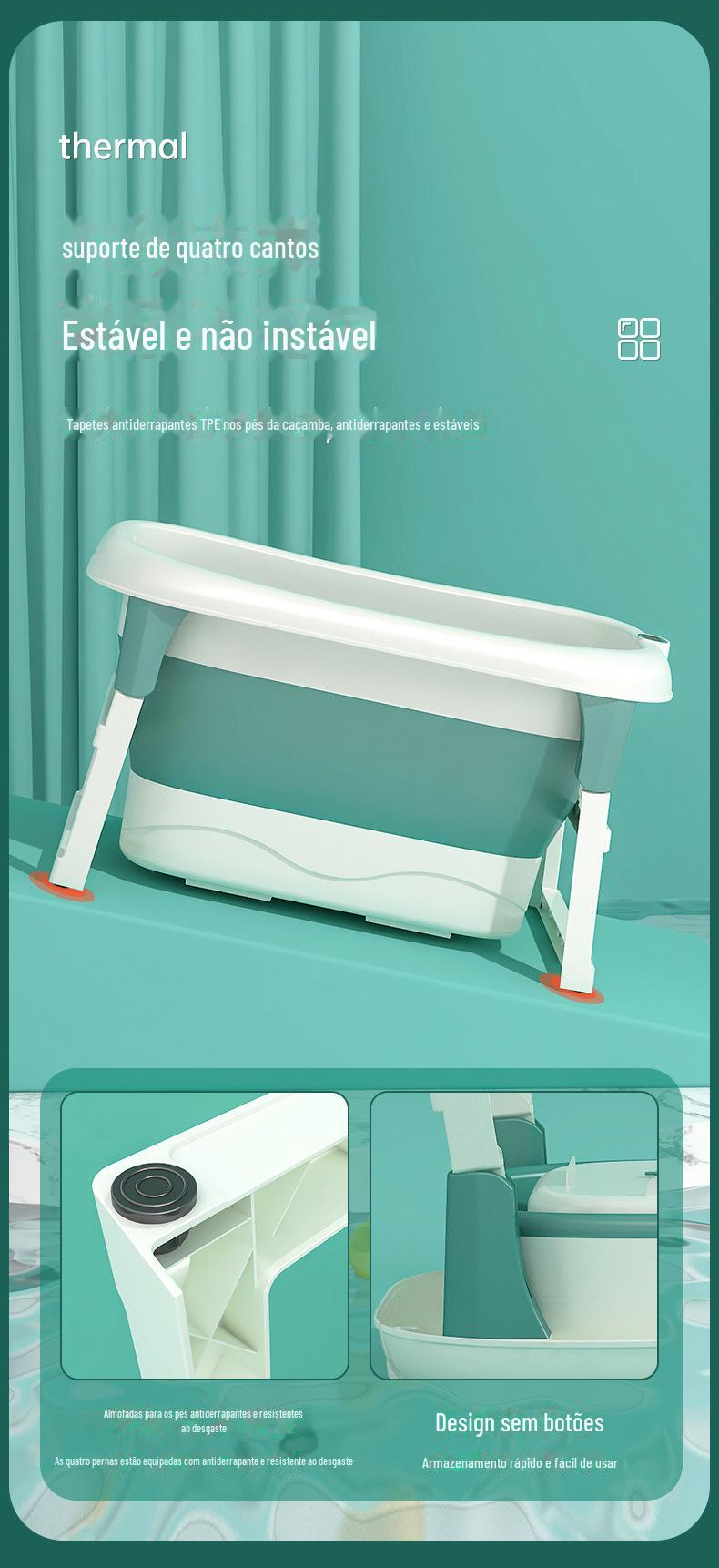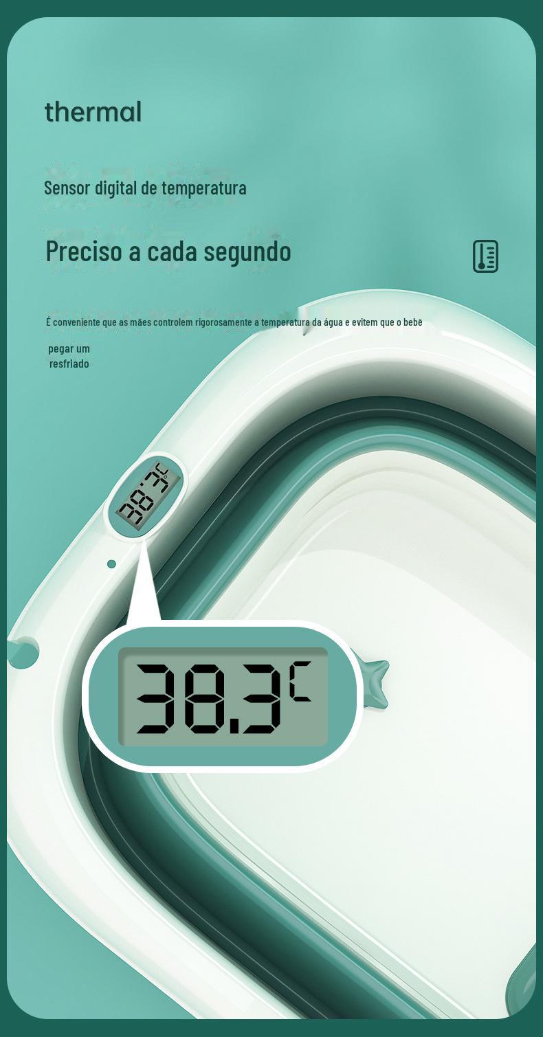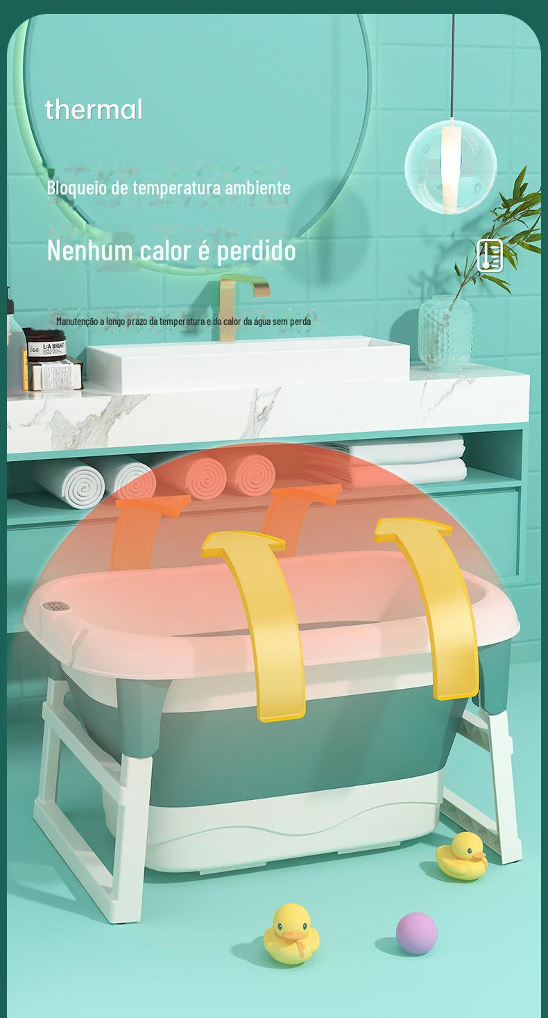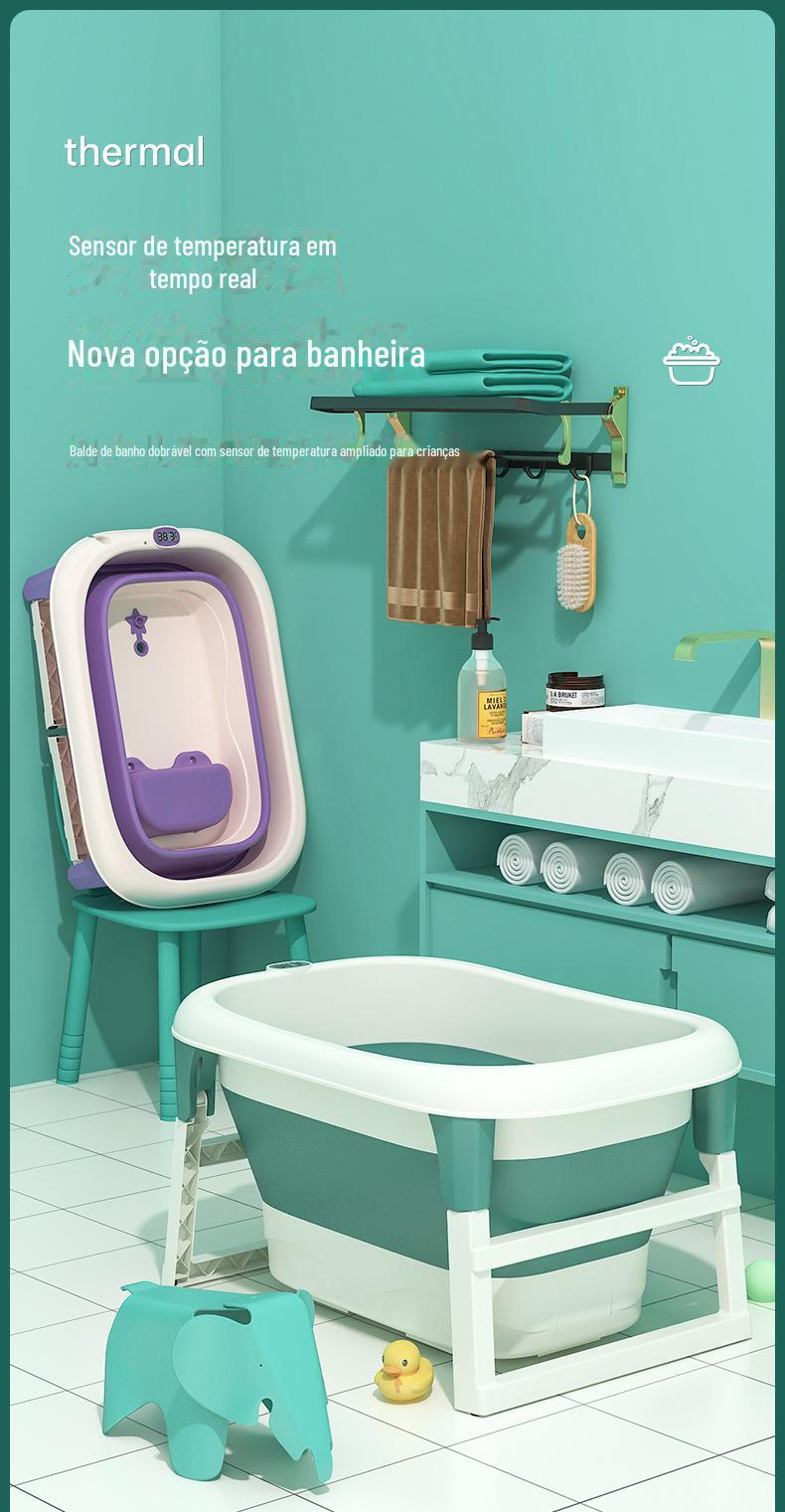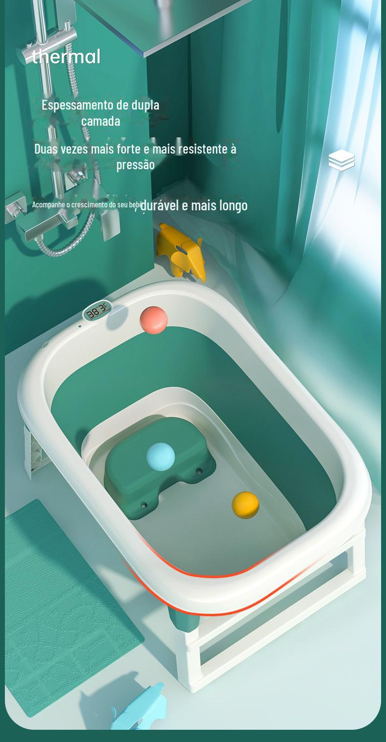 Balde de Banho Dobrável Infantil, Banheira de Bebê, Bacia de Banho com Medição de Temperatura, Adequado para Nadar e Relaxar, Modelo Grande e Elevado para Uso Doméstico