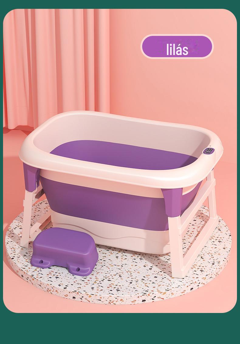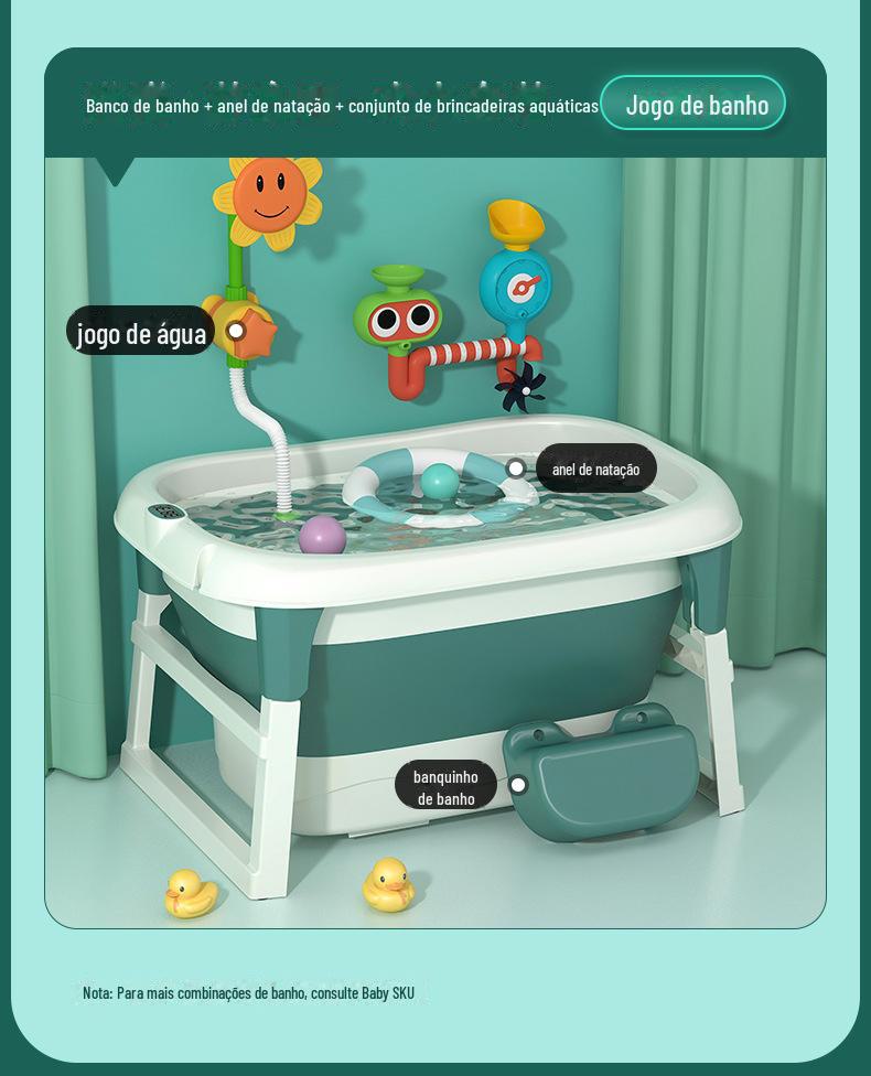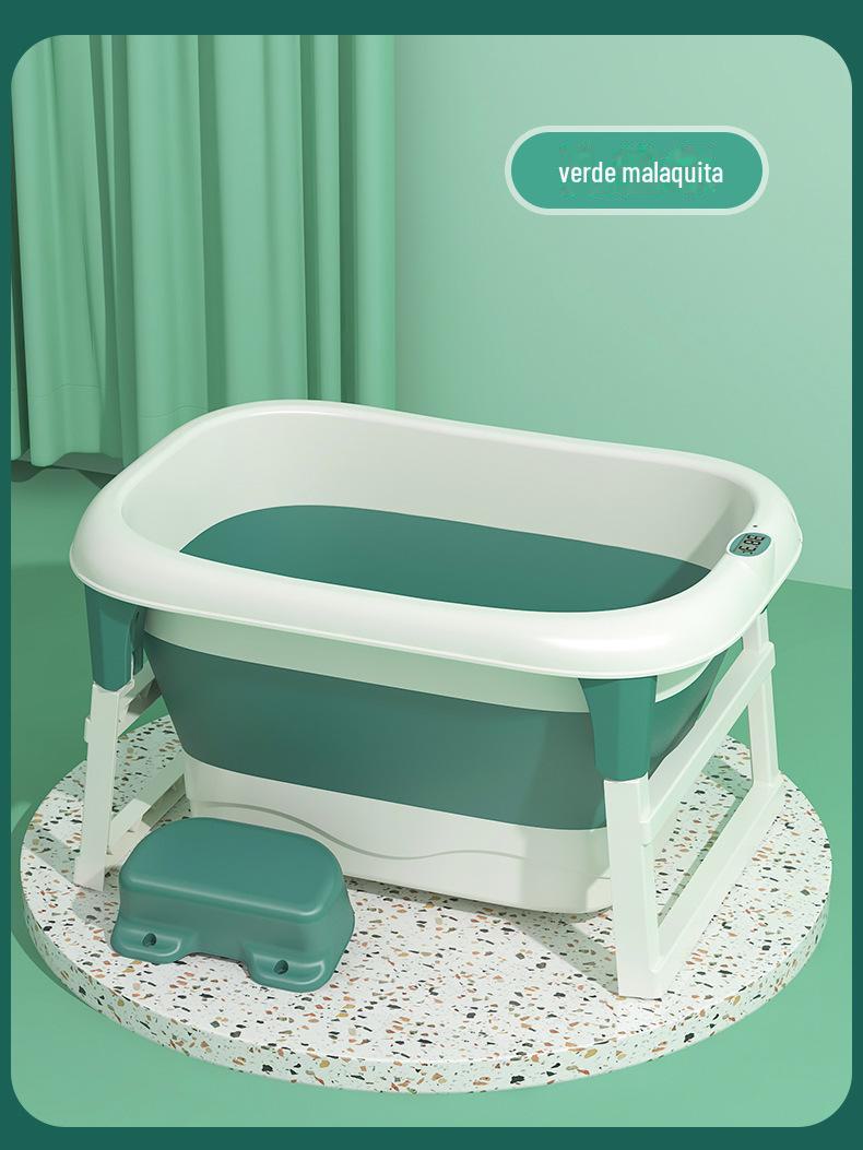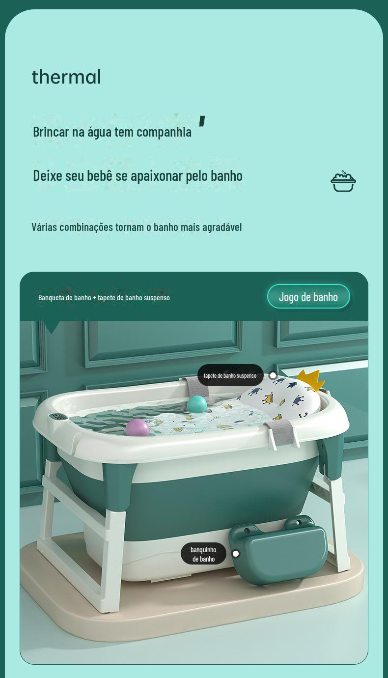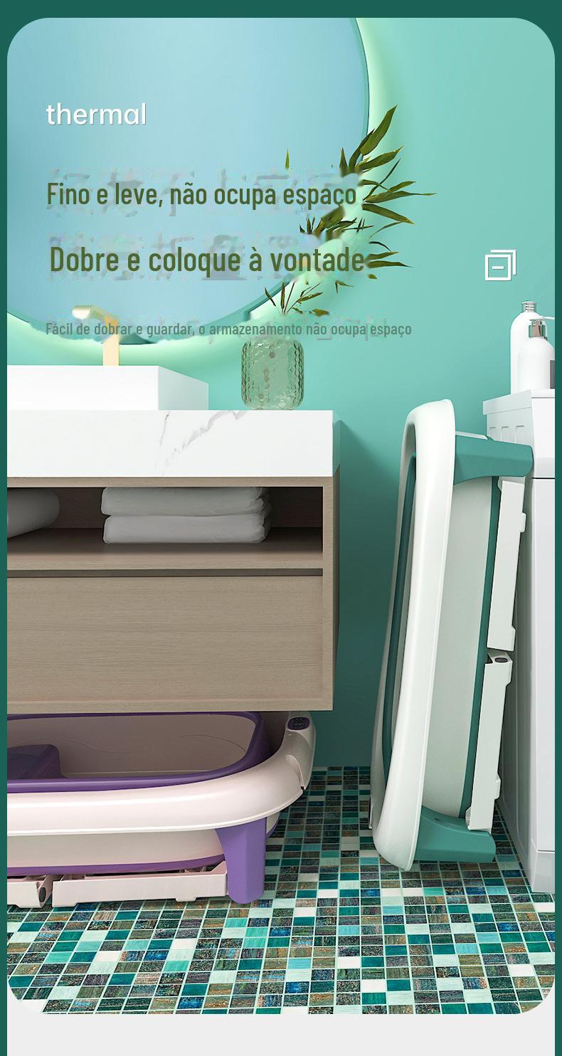Balde de Banho Dobrável Infantil, Banheira de Bebê, Bacia de Banho com Medição de Temperatura, Adequado para Nadar e Relaxar, Modelo Grande e Elevado para Uso Doméstico