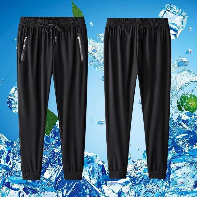 Calças de seda fina de verão para homens, calças elásticas, calças casuais respiráveis e largas, plus size