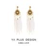 Brincos longos de borla de pena branca estilo étnico retrô de metal geométrico de alta qualidade clipe de orelha de bobina de mosquito sem orelhas furadas