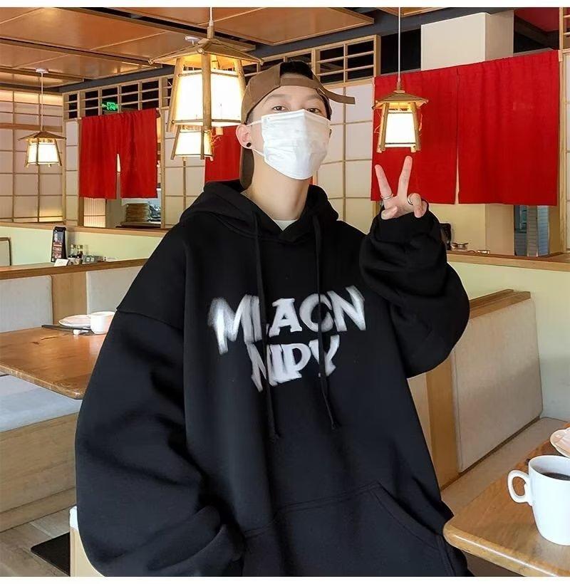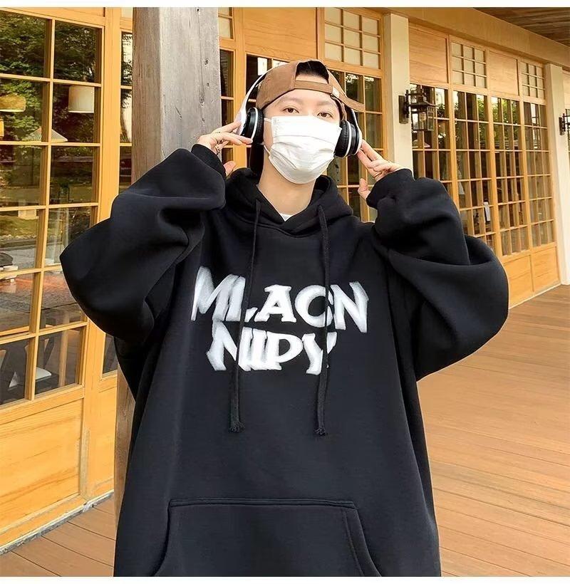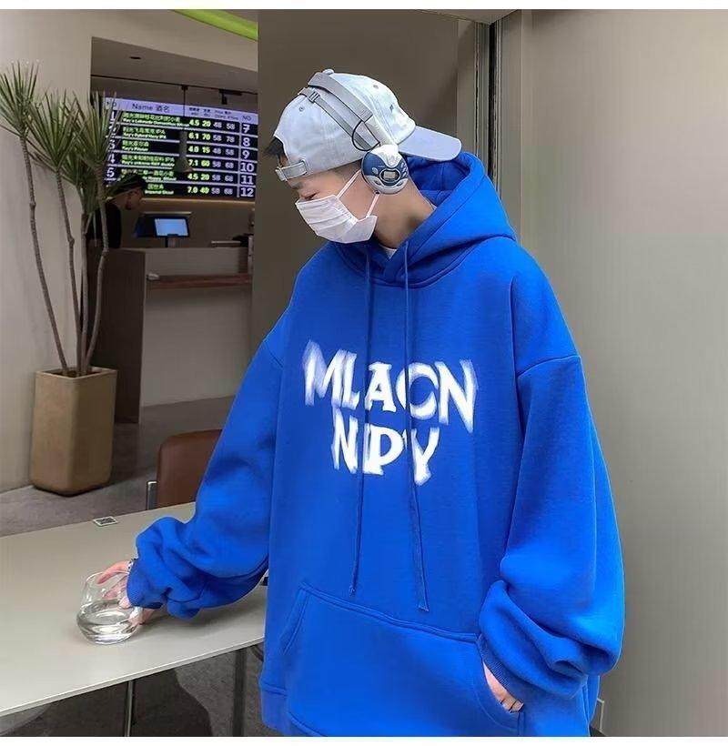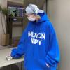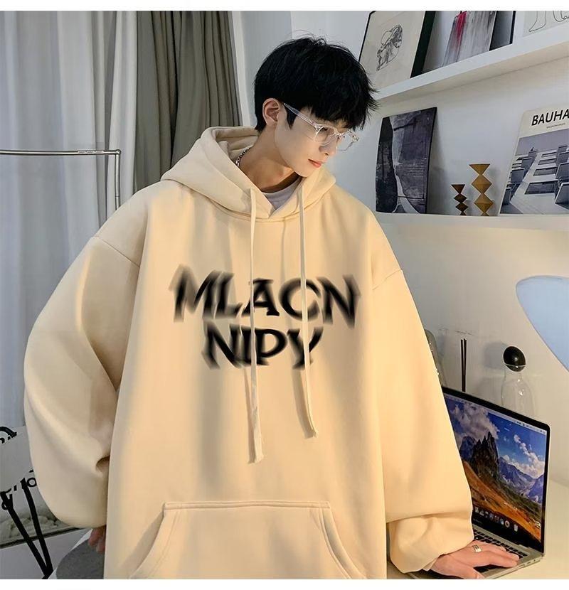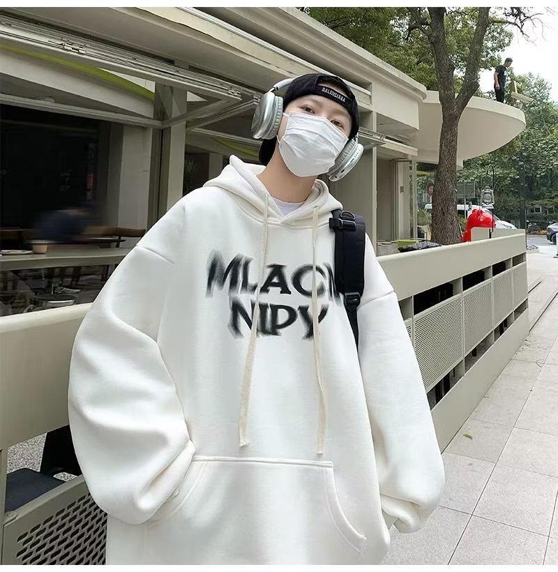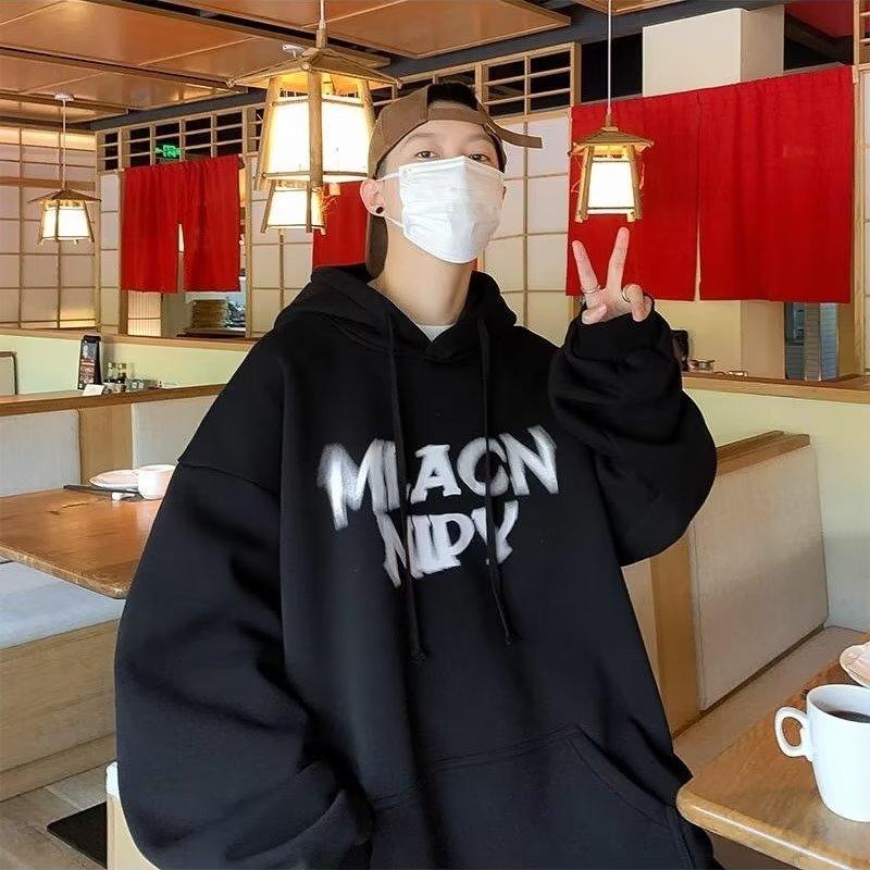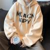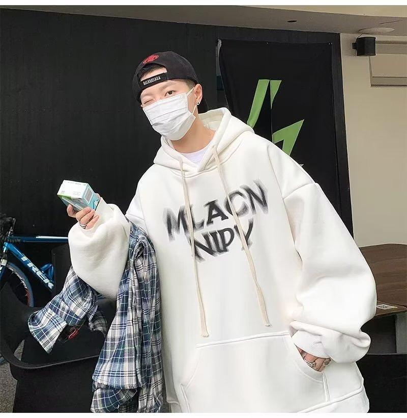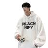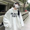 Suéter pesado com capuz masculino outono e inverno marca de moda americana estampado high street top juventude solto forrado de lã casaco engrossado
