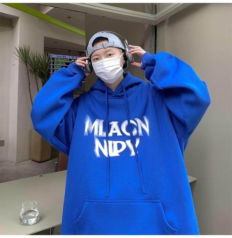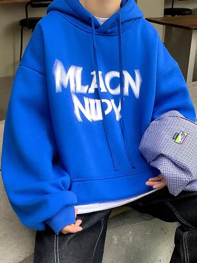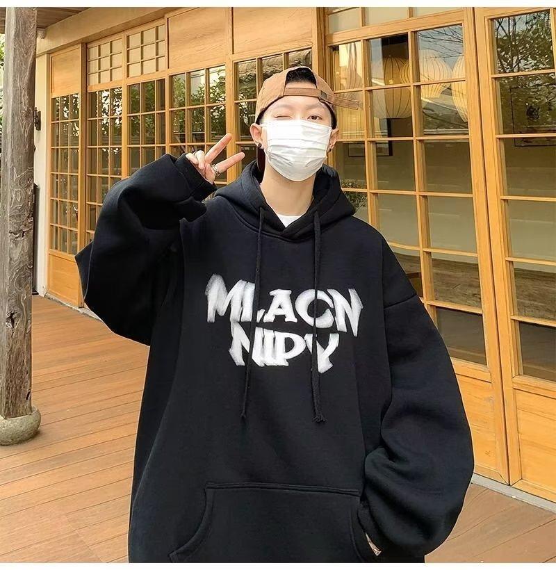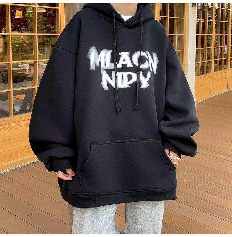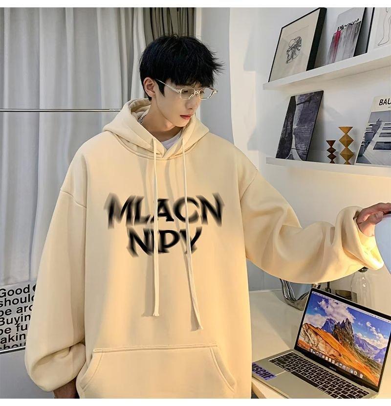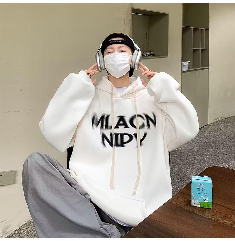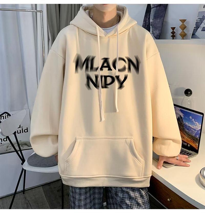 Suéter pesado com capuz masculino outono e inverno marca de moda americana estampado high street top juventude solto forrado de lã casaco engrossado