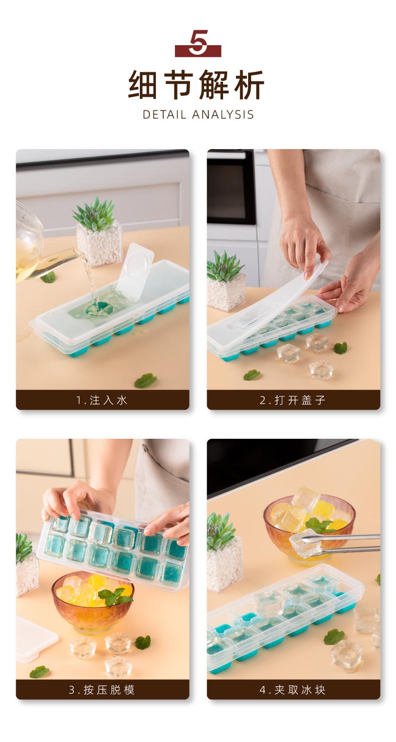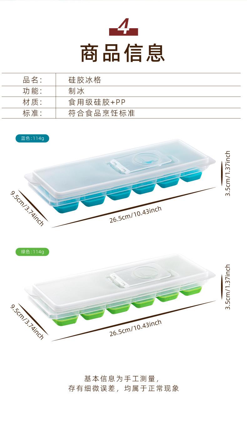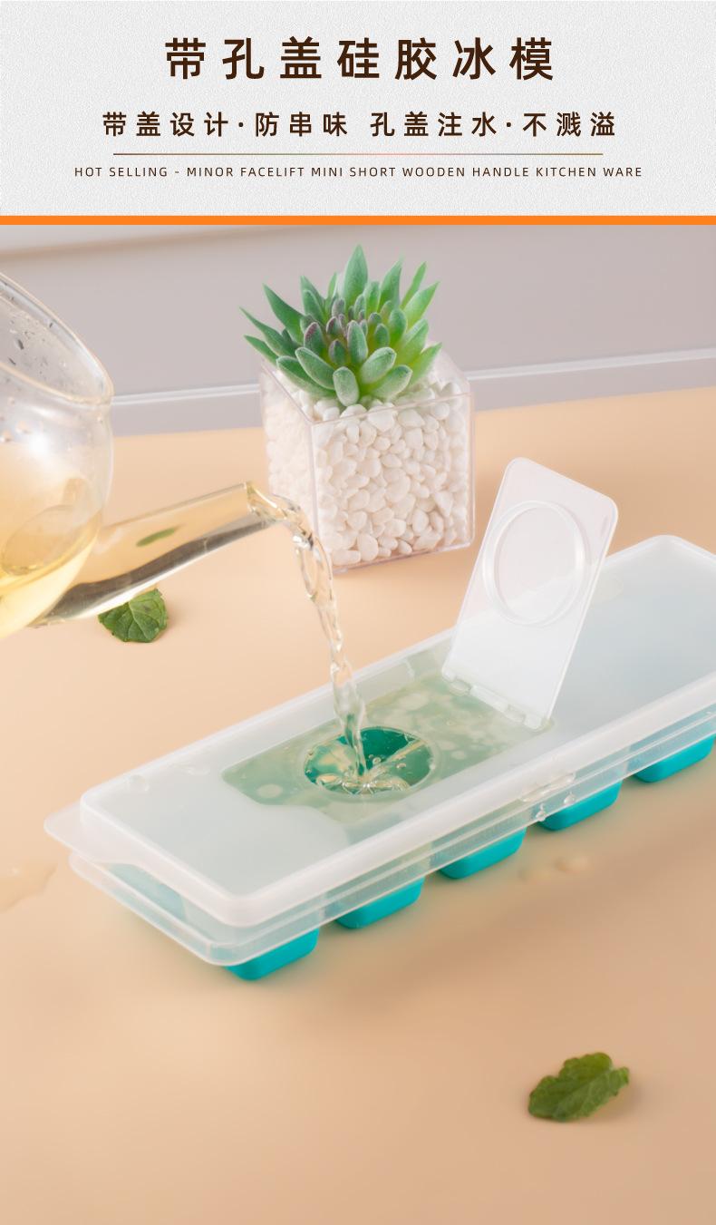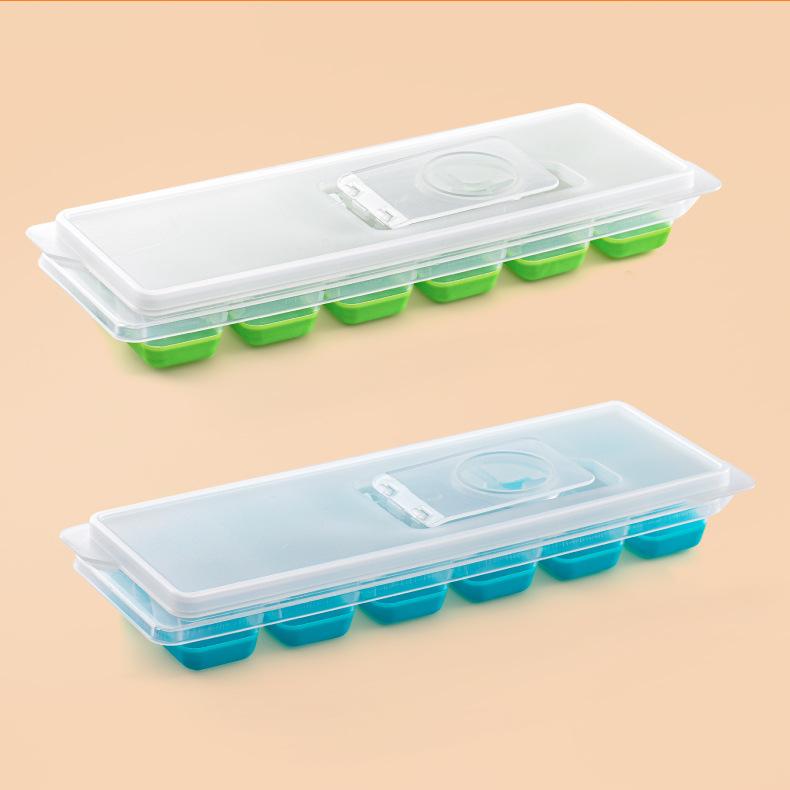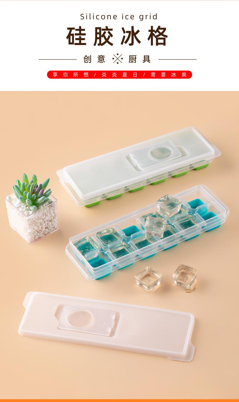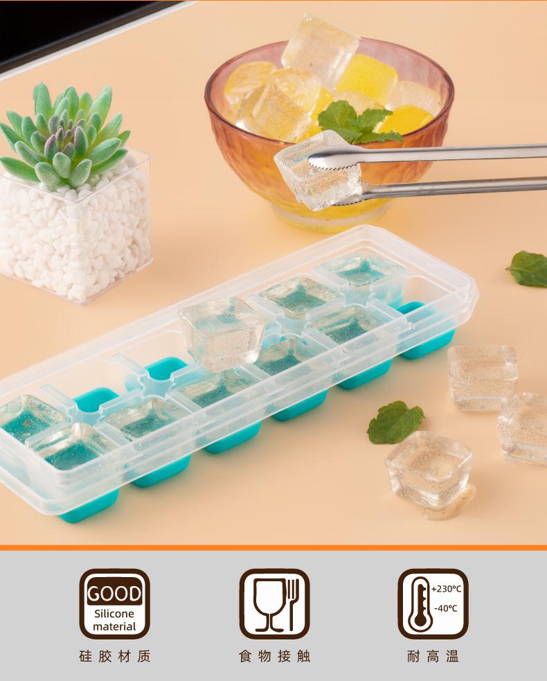 Em estoque Novo molde de cubo de gelo de silicone 12 cubos de gelo com tampa Caixa de gelo multiestilo reutilizável