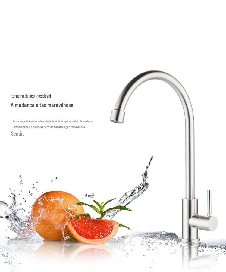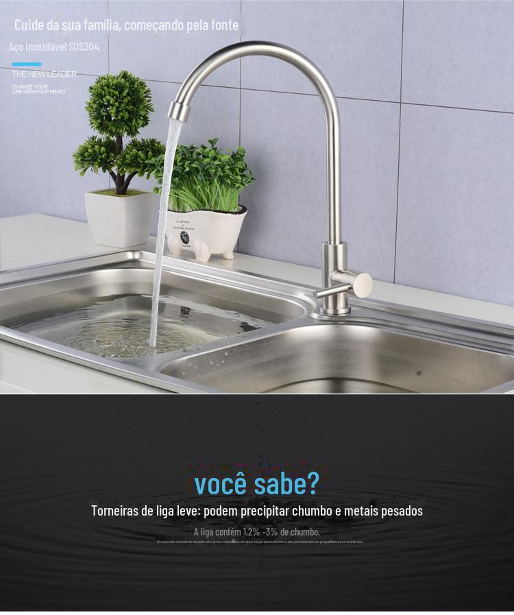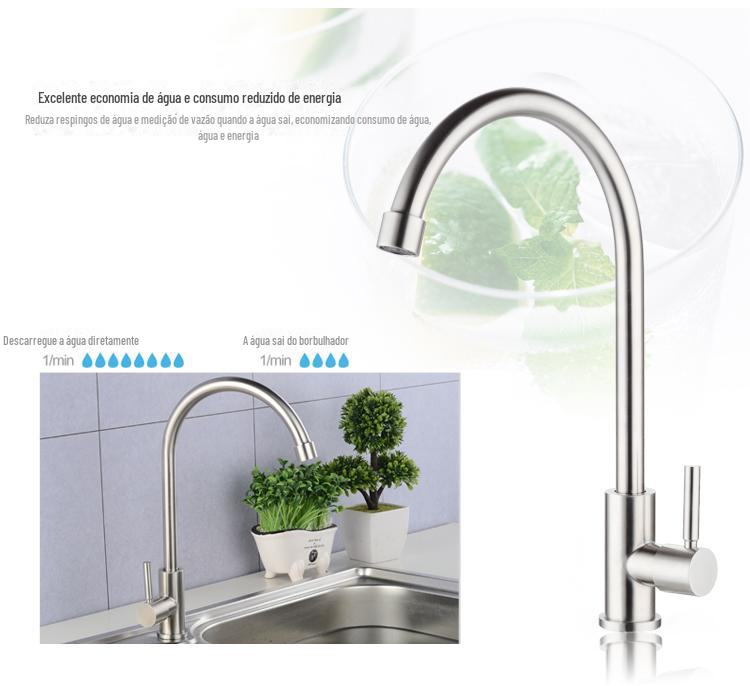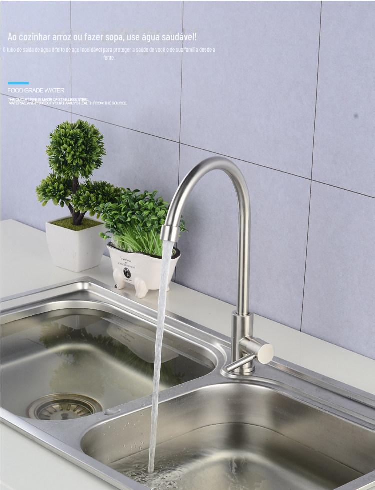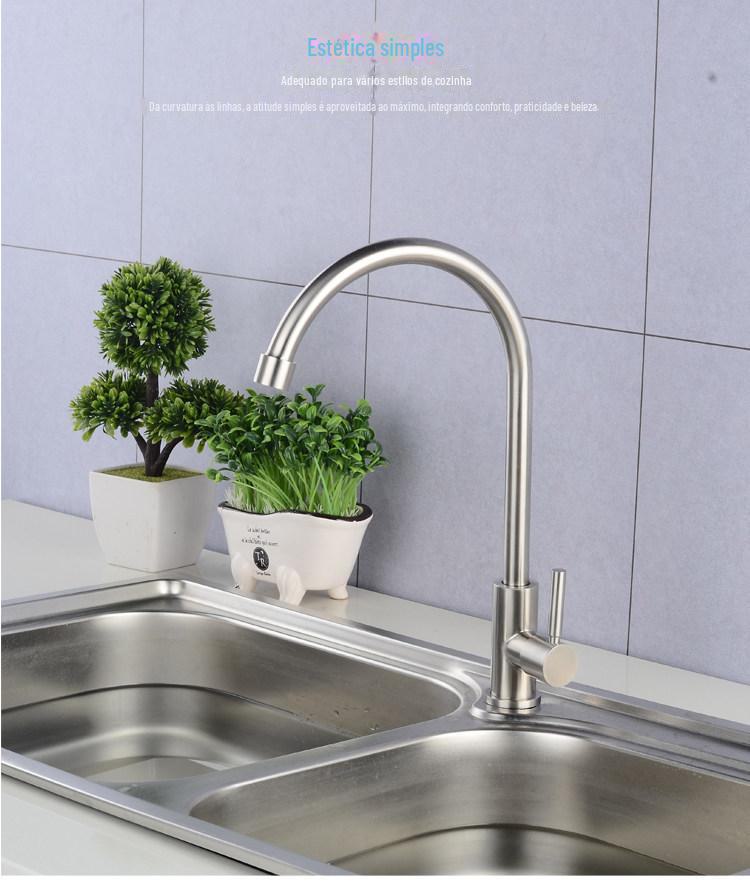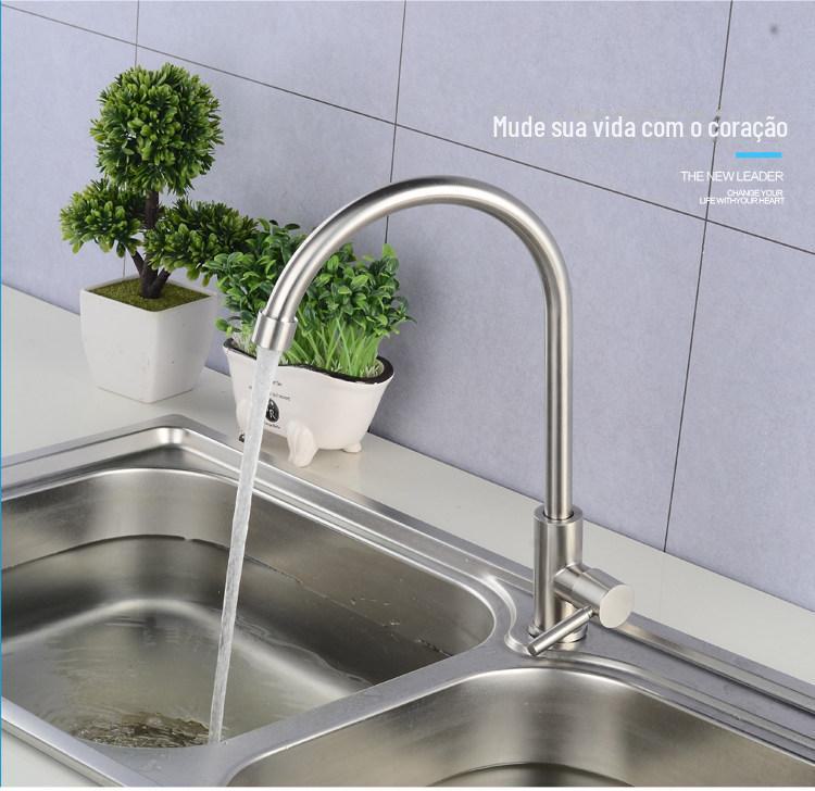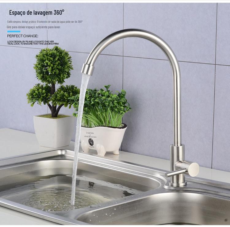 Torneira de Cozinha de Aço Inoxidável 304 para Água Fria Única para Pia, Torneira de Pia Monofuro para Lavar Louça