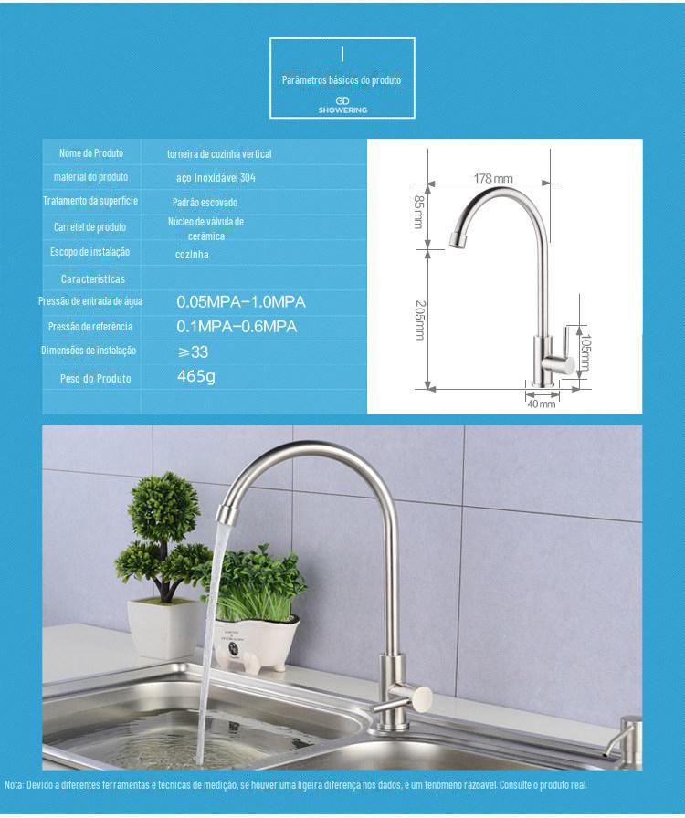 Vendas diretas da fábrica 304 torneira de pia de cozinha fria vertical única, 1 caixa de 5 peças, garantia de qualidade, grande quantidade, preço preferencial. O preço deste produto não inclui impostos. A fatura é obrigatória. Entre em contato com o atendimento ao cliente antes de fazer um pedido.