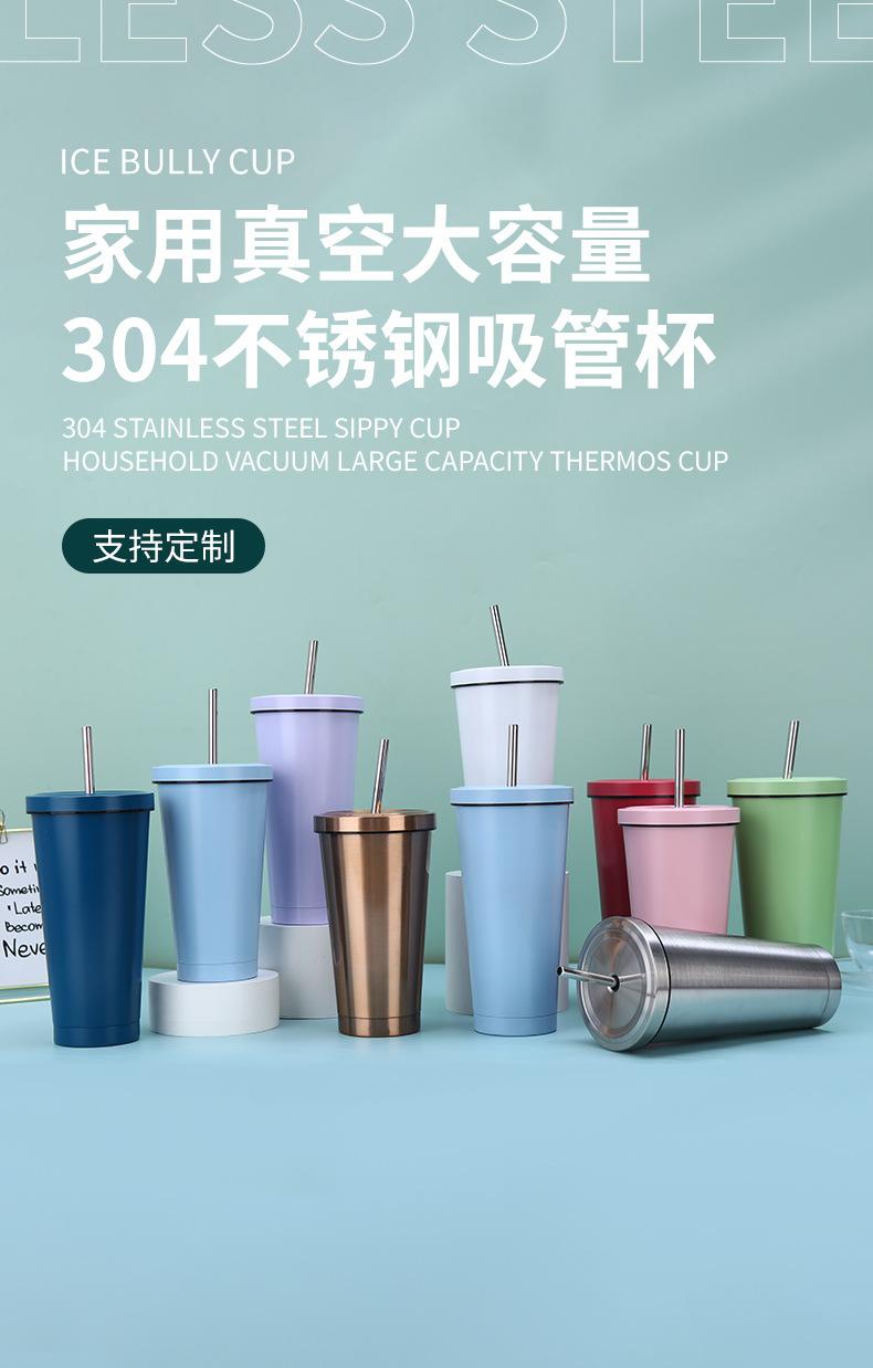Cross-border 304 Aço Inoxidável Tubo de Sucção Copo Aspirador Doméstico Grande Capacidade Copo Térmico Ao Ar Livre Carro Portátil Copo de Café