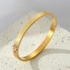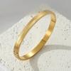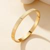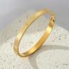 Fabricantes de pulseira de aço de titânio atacado aberto ajustável em forma de c pulseira feminina gravada padrão texto logotipo pulseira de aço inoxidável
