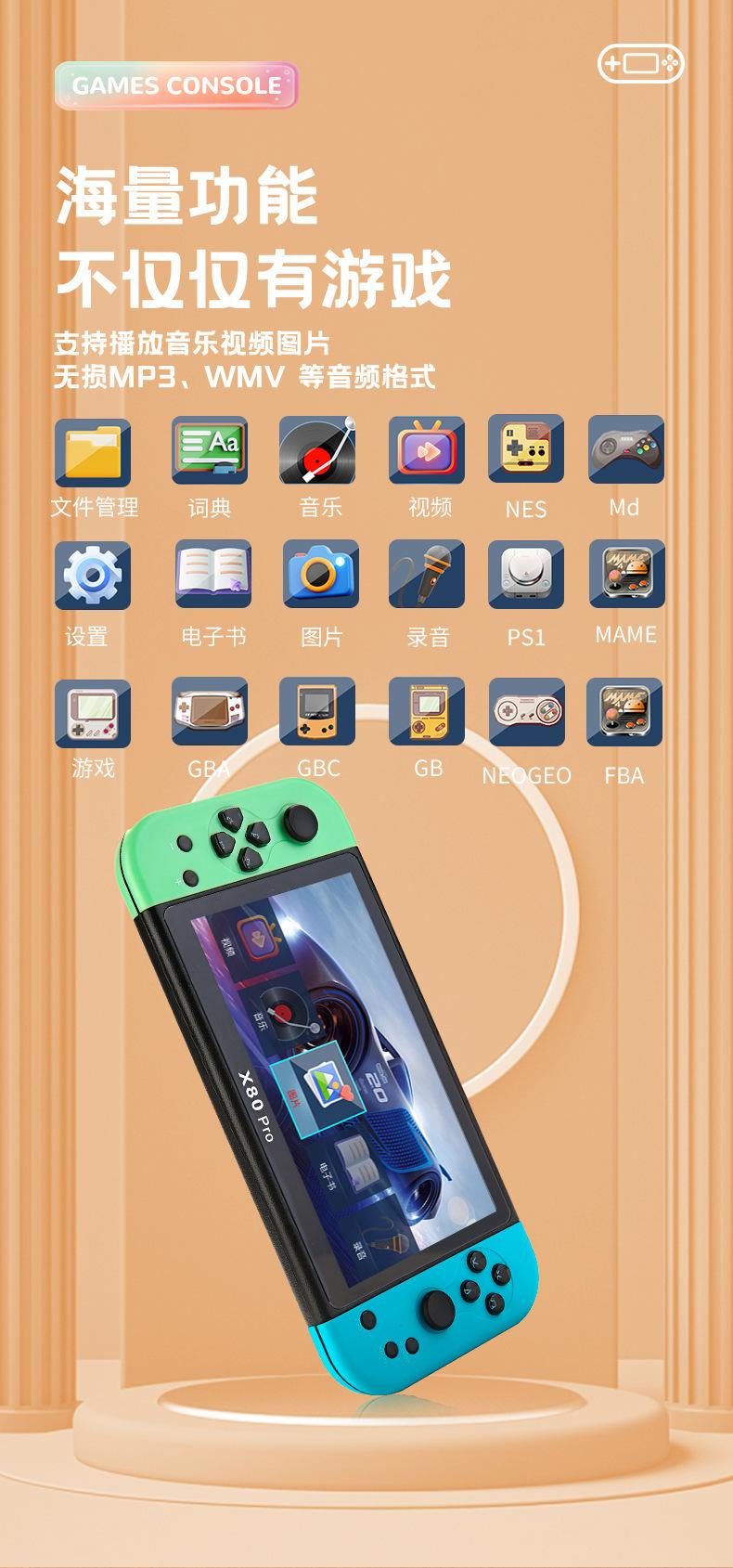 X80PRO máquina de jogo crianças adulto duplo Classic TV FC nostálgico PSP arcade portátil GBA máquina de jogo