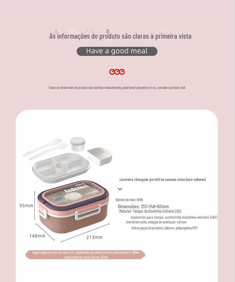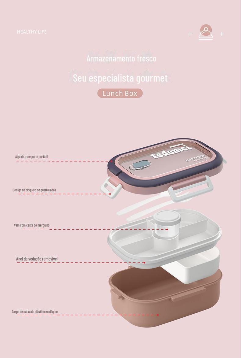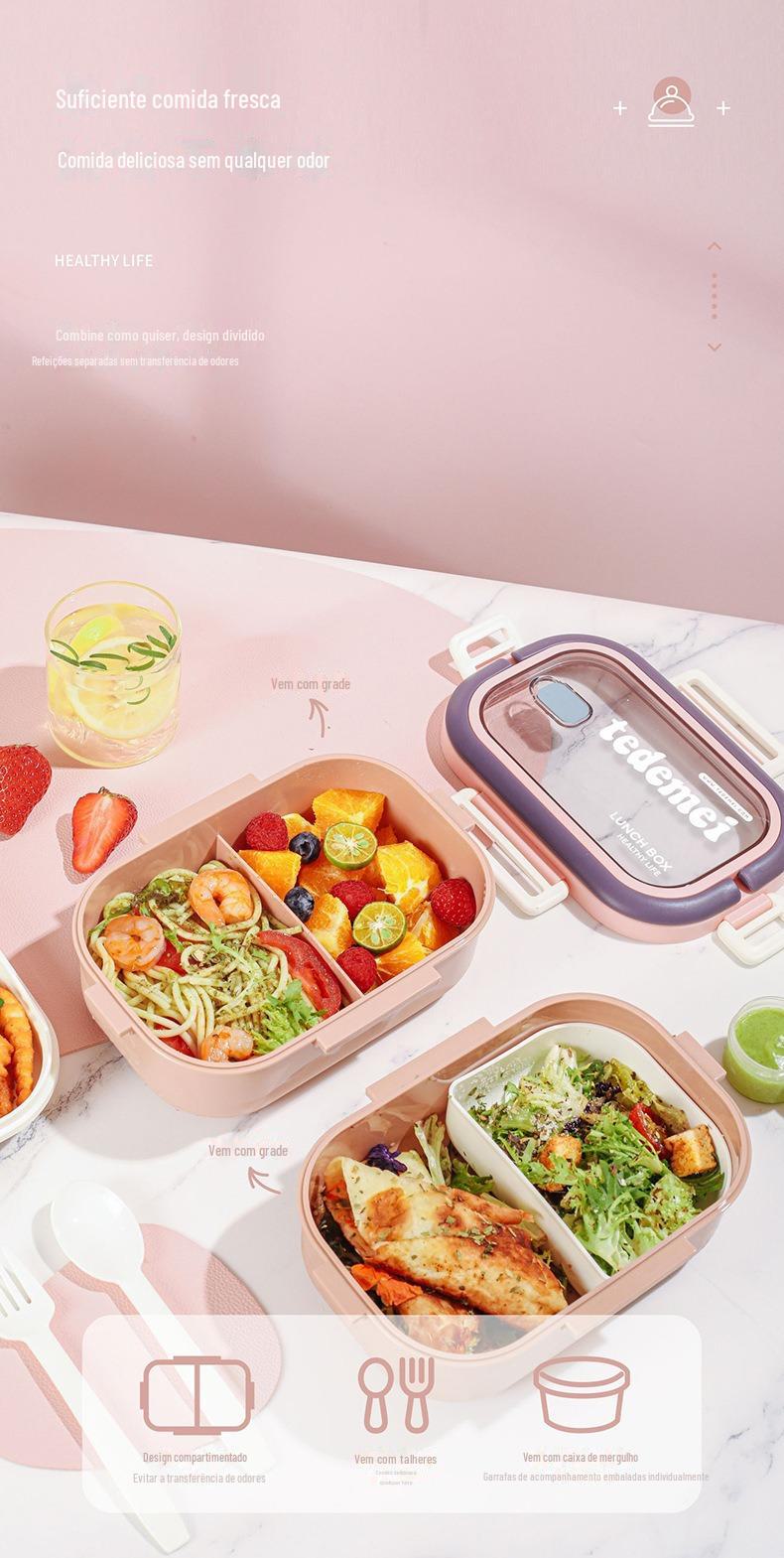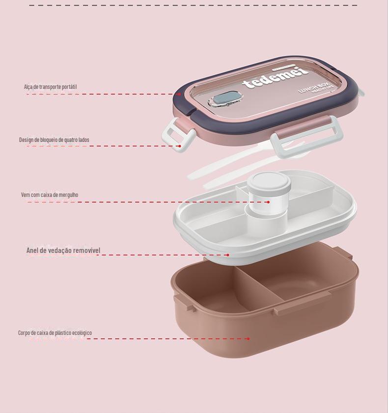 Isolamento de grande capacidade lancheira micro-ondas em camadas destacável estudante lancheira de plástico moderno simples lancheira