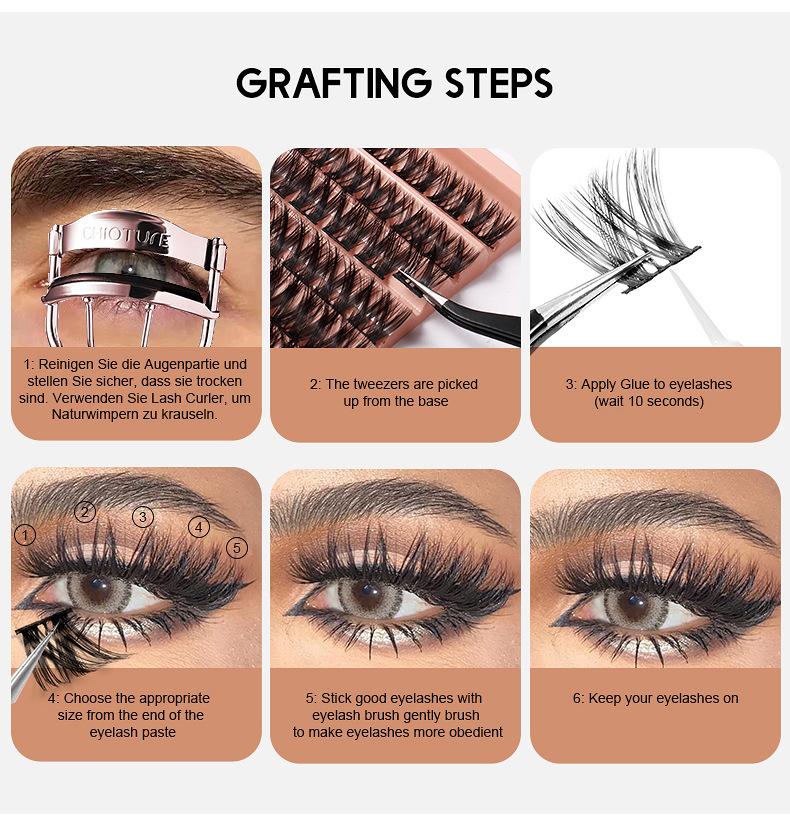 Cross-border novo DIY split cílios postiços cluster único 7 fileiras de cabelo longo grosso enxerto cruz cílios atacado