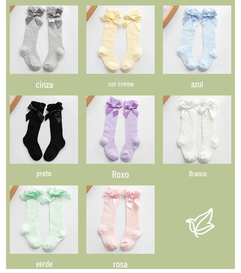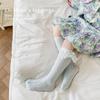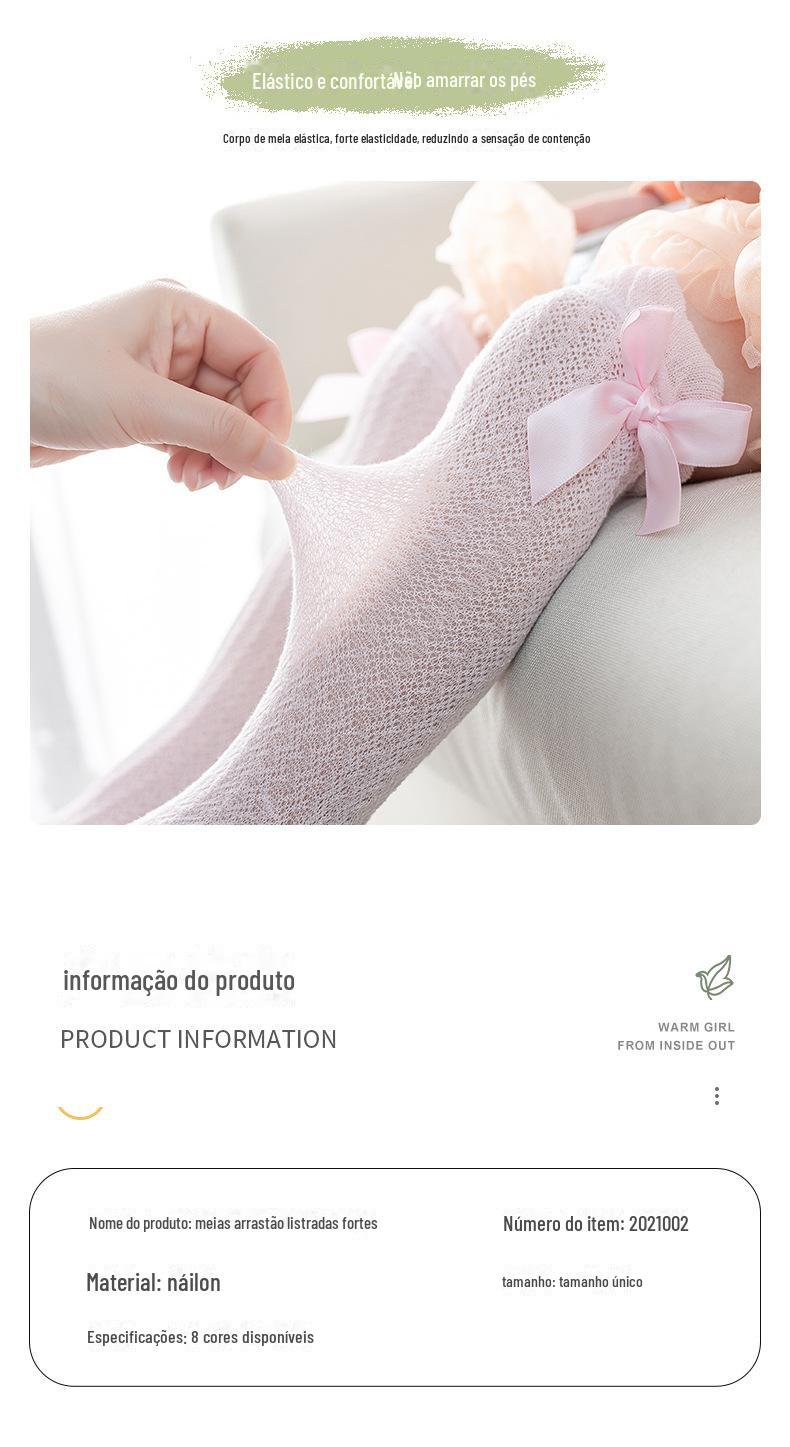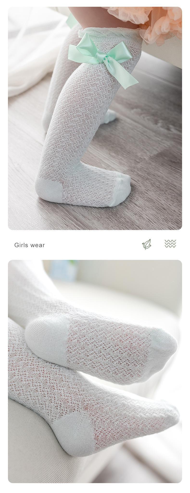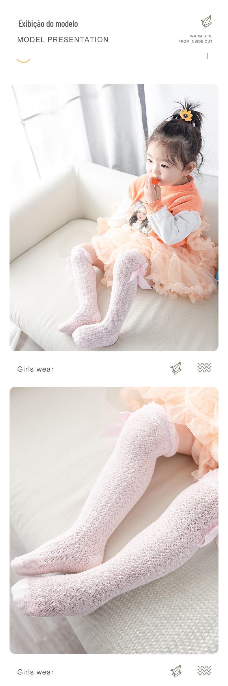 Verão Novo respirável listra vertical malha meias infantis mulheres suave laço ceroso sobre o joelho meias anti-mosquito bebê meias na moda