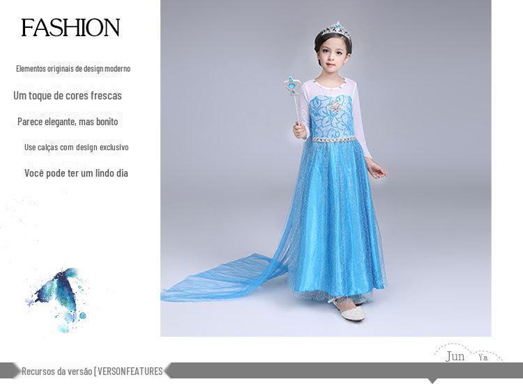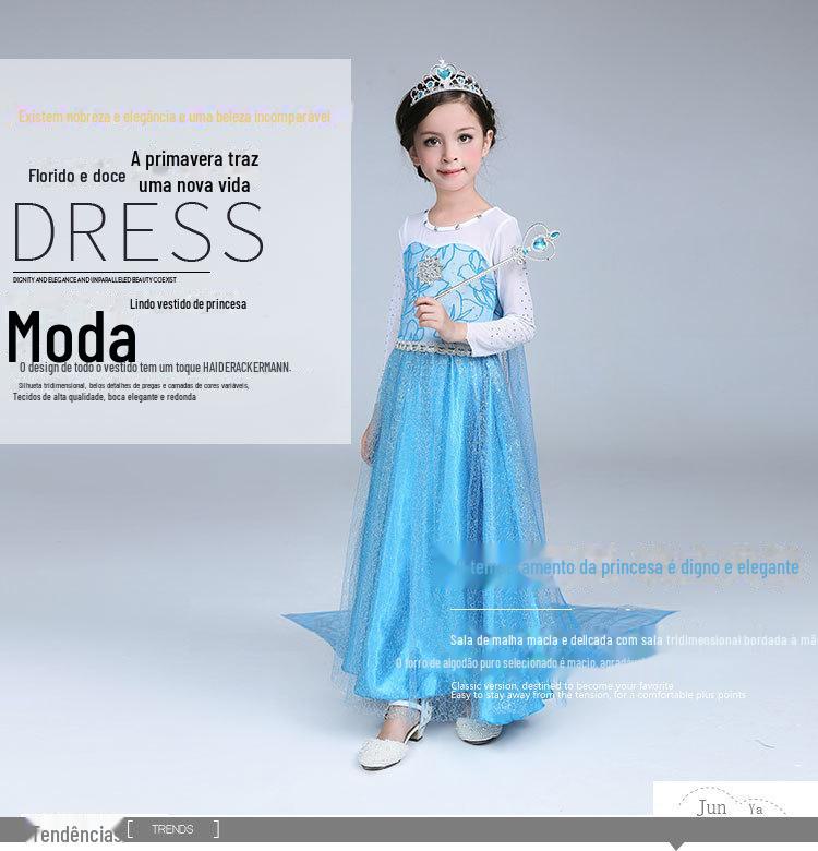 Vestuário infantil transfronteiriço Vestido de princesa congelado manto de atividade clássica Vestido de princesa Elsa