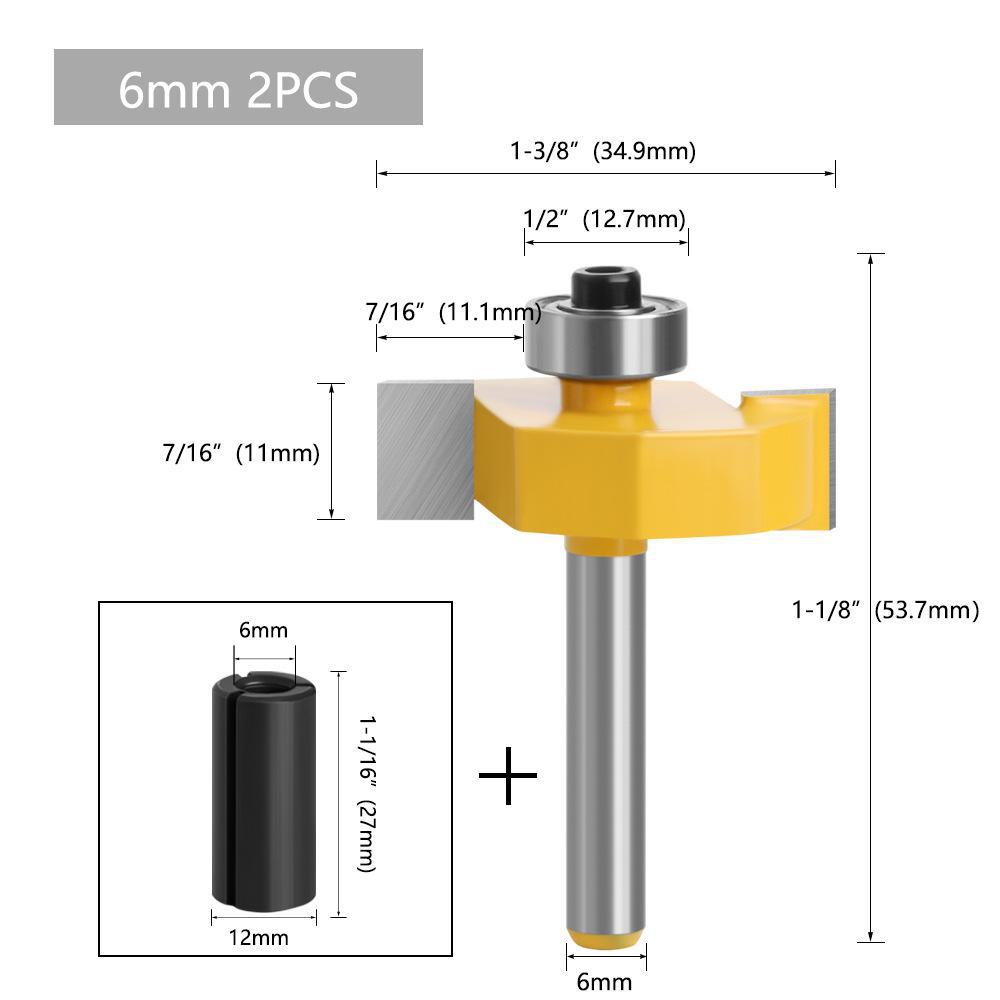 As alças do cortador de madeira incluem: 3 mm, 6 mm, 1/4 "(6,35 mm), 8 mm, 12 mm, 1/2" (12,7 mm)