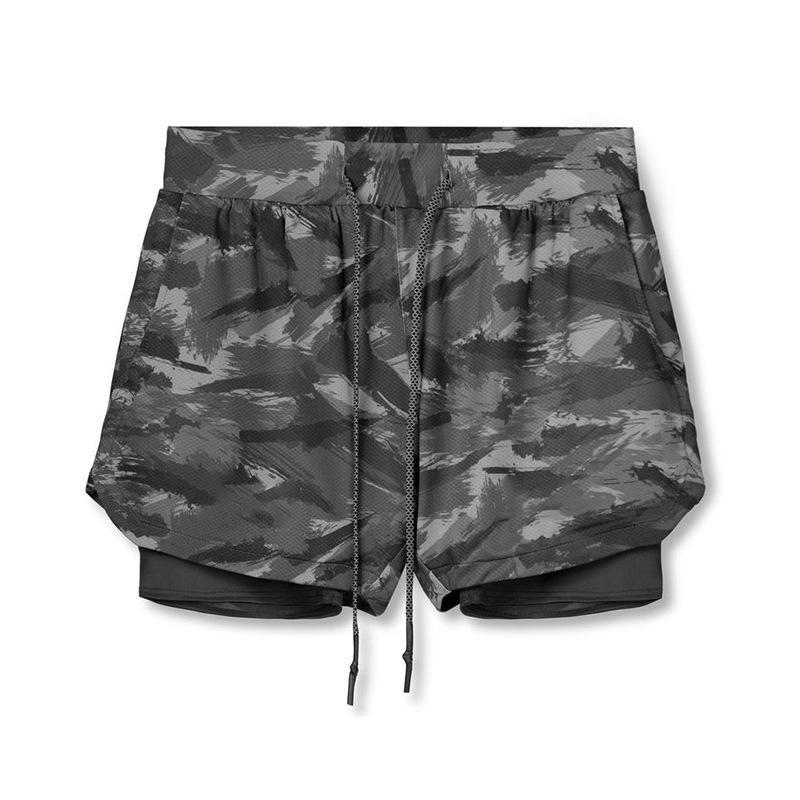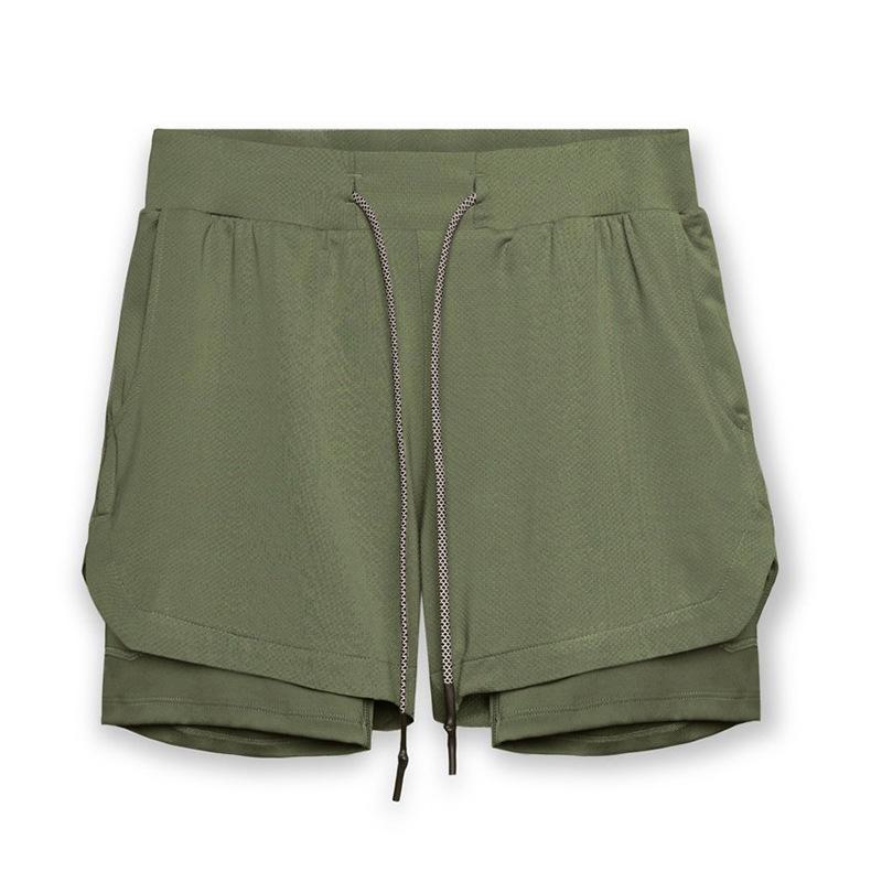 Comércio Exterior Masculino Running Shorts Esportes Lazer Outdoor Loose Fitness Dupla Camada Fitness Calças Celular Celular Limpador de Suor