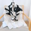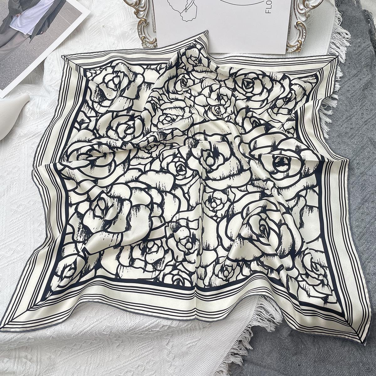 Novo preto e branco Chanel estilo Camellia sarja de seda 70 lenço quadrado médio feminino outono e inverno decorativo profissional pequeno lenço atacado