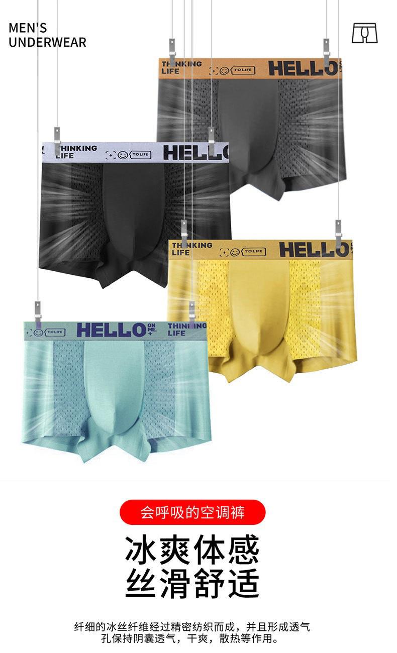 Verão quente vendendo roupas íntimas masculinas gelo seda malha malha boxer shorts verão fino respirável ar condicionado calças calças