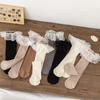 Meias de bezerro das crianças outono cor sólida das meninas fio pontilhado renda joelho meias penteado algodão doce meninas meias