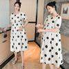 Vestido de Verão para Gestantes, Novo Vestido Longo Solto de Manga Curta na Moda até o Joelho com Fenda Lateral