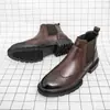 Botas Martin Masculinas Couro Genuíno Inverno Forradas com Lã Cano Alto Sapatos de Couro Cano Médio Botas Chelsea Britânicas Retrô Cano Baixo Botas Masculinas