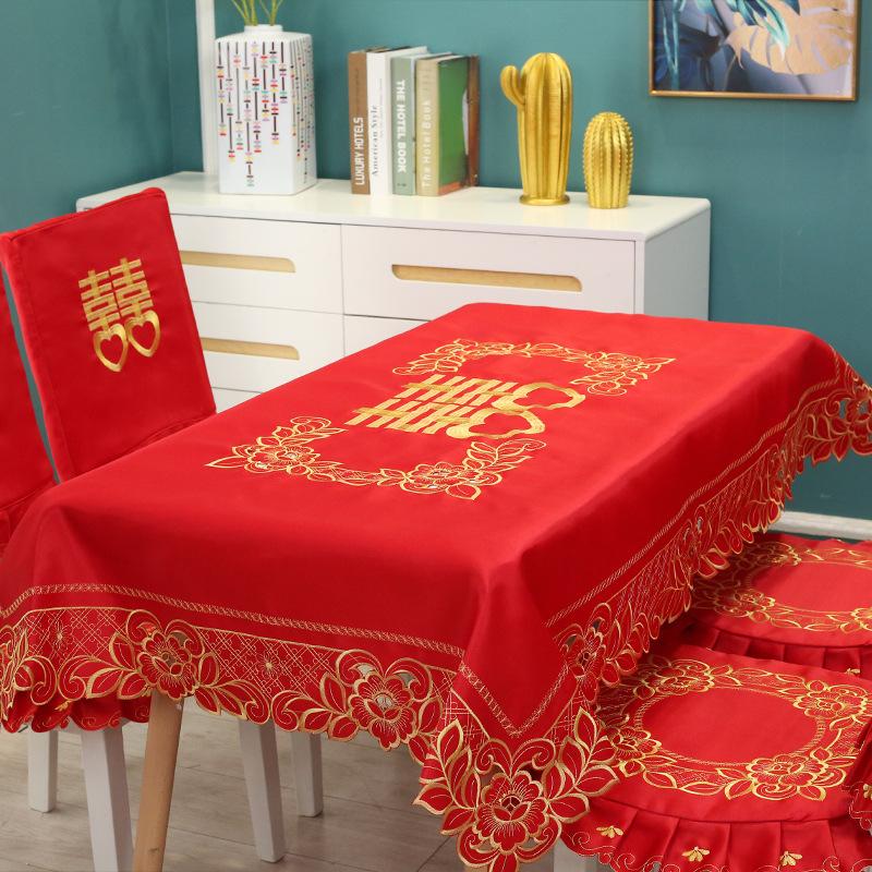 Novo estilo chinês toalha de mesa vermelha toalha de mesa festiva de casamento retangular pano vermelho mesa de jantar mesa de centro cobrindo pano toalha de mesa tecido