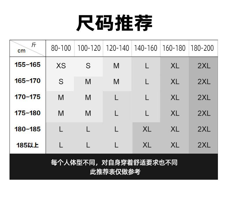 XS 80-100, S 100-120, M 120-140, L 140-160, XL 160-180, XXL 180-200
