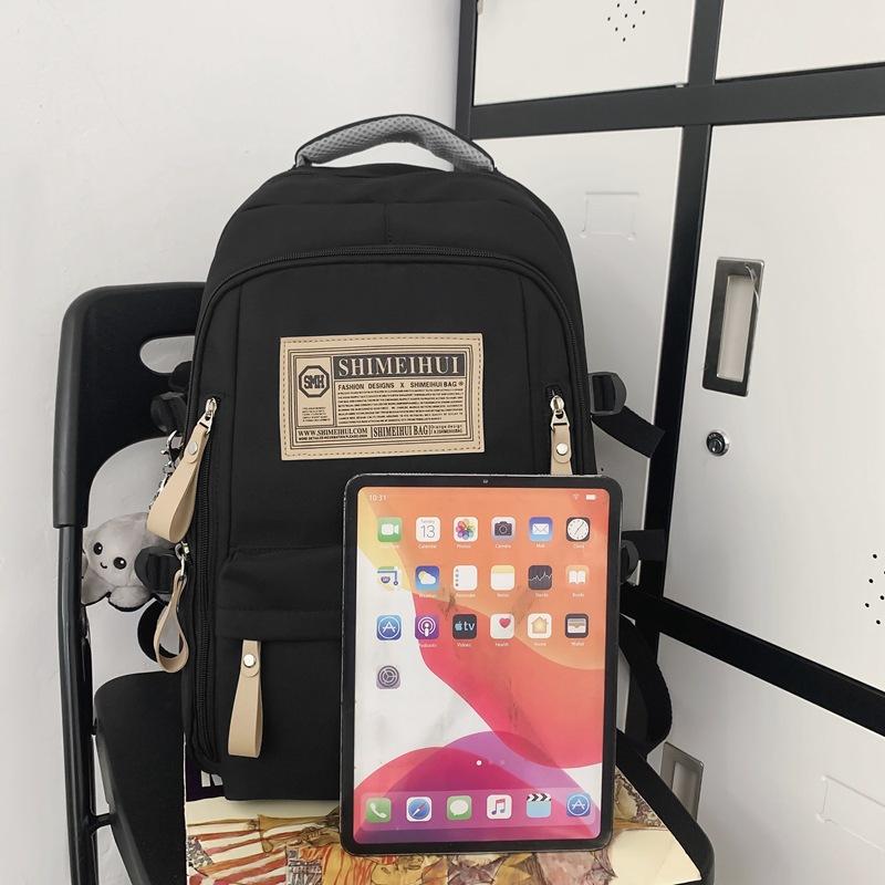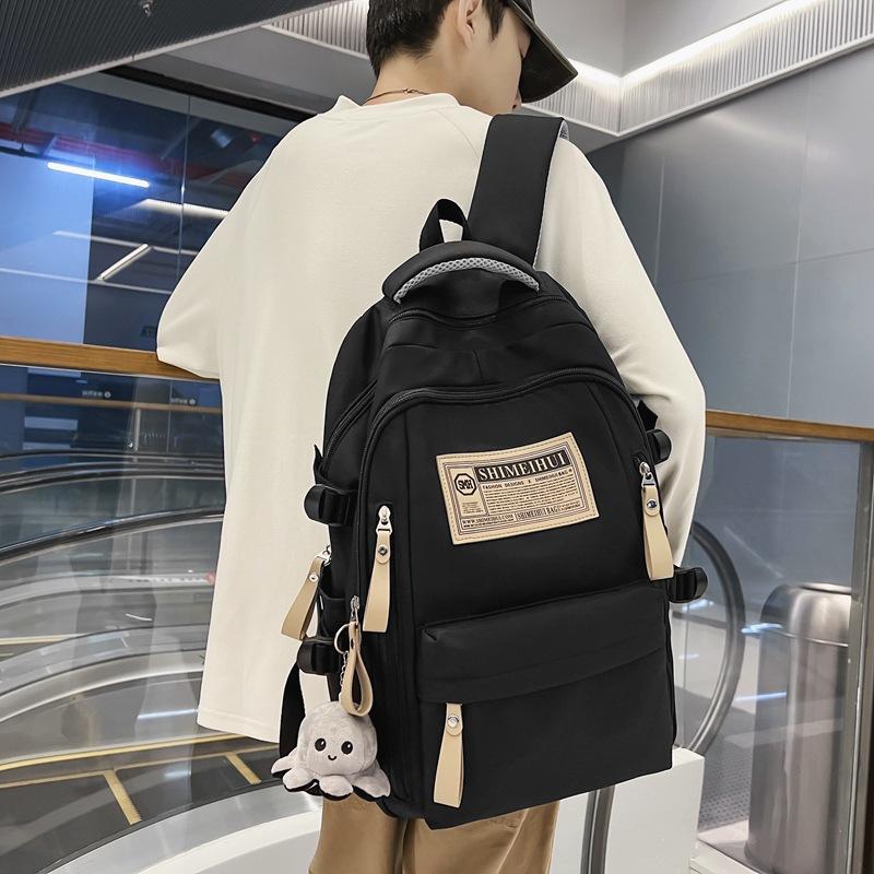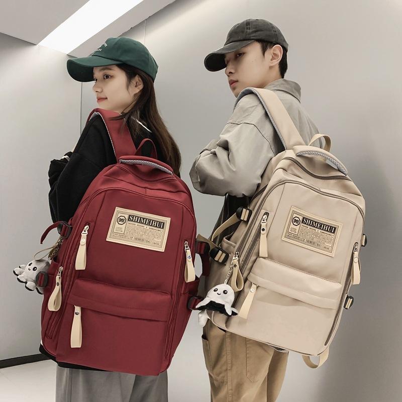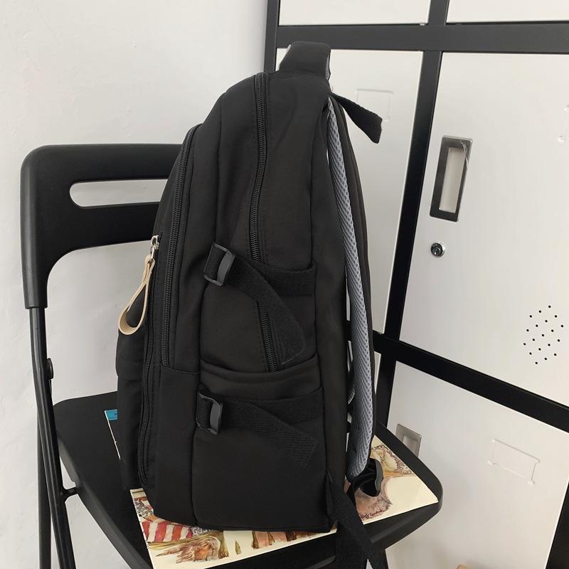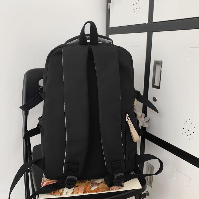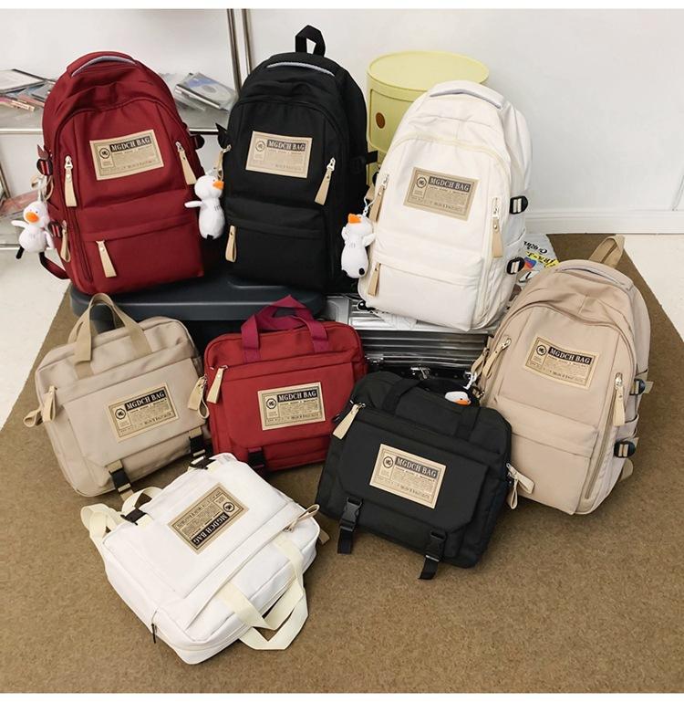 Mochila Escolar 2024 Novo Estilo Simples Cor Pura Casal Mochila de Nylon Grande Capacidade Casual Estudante do Ensino Médio Mochila de Viagem
