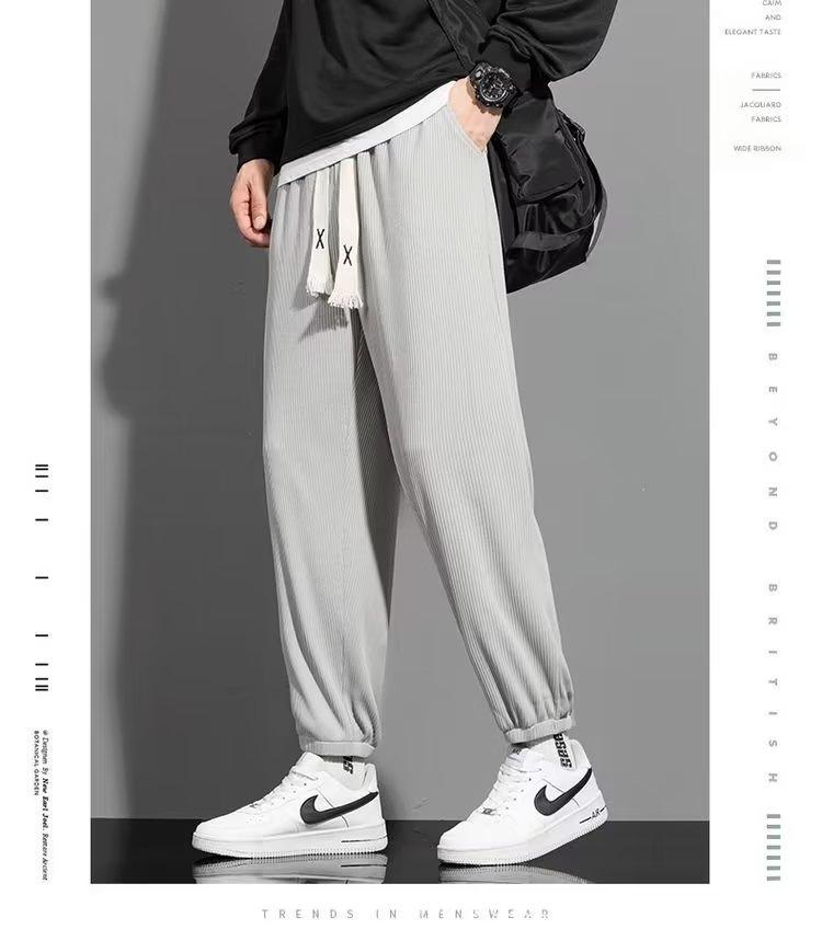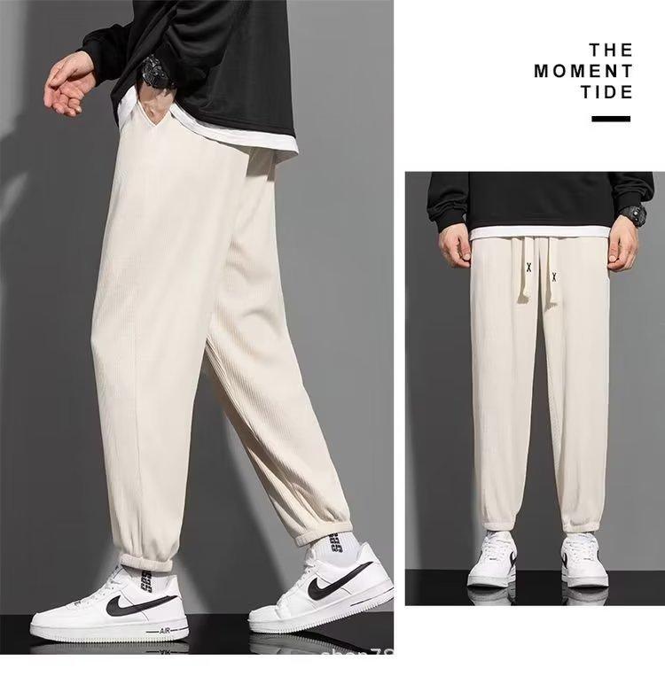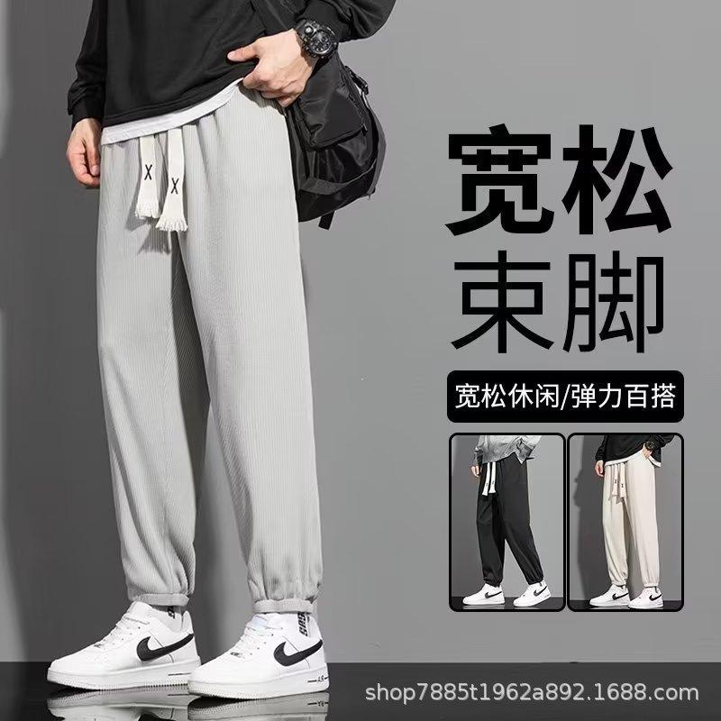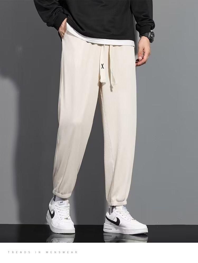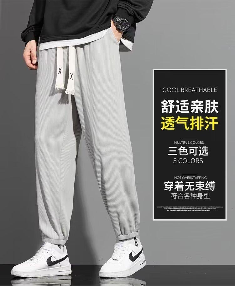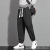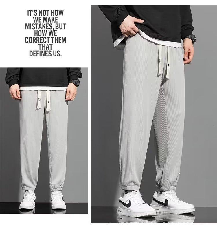 Calça esportiva amarrada no tornozelo, calça masculina de verão fina de secagem rápida calça masculina respirável fresca casual plus size calça amarrada no tornozelo