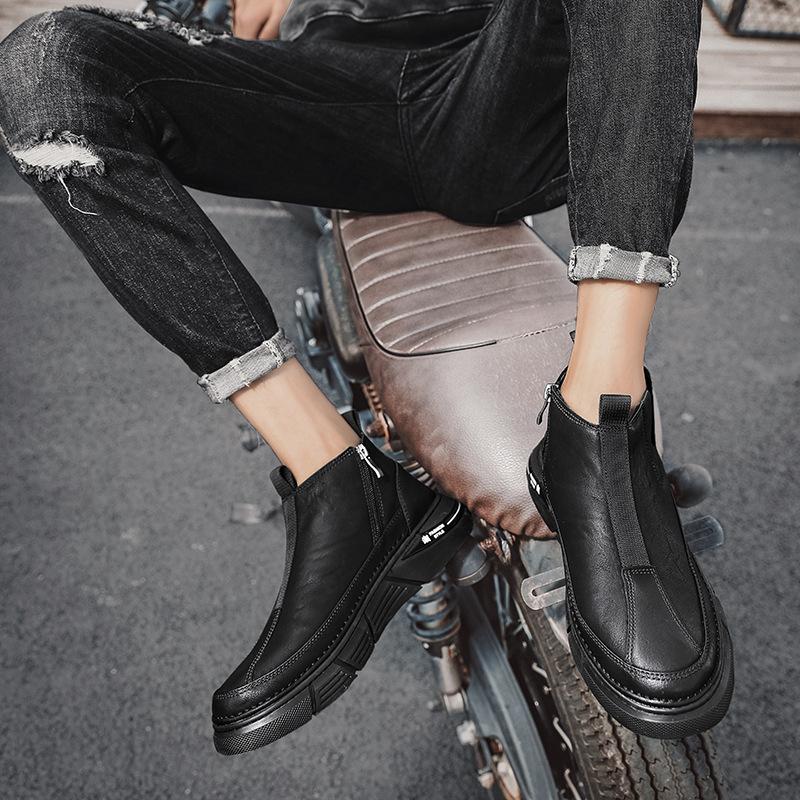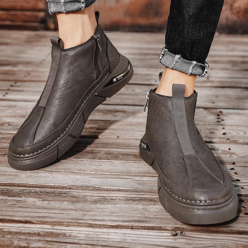 Compre Outono e Inverno Novo Lateral Zíper Mid-top Casual Tooling Moda Masculina Martin Boots Set Foot Retro High-top Sapatos Masculinos no atacado no Joom.pro