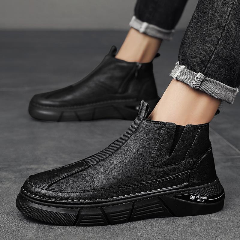 Outono e Inverno Novo Lateral Zíper Mid-top Casual Tooling Moda Masculina Martin Boots Set Foot Retro High-top Sapatos Masculinos