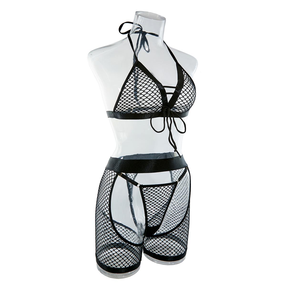 Compre Comércio Exterior Europeu e Americano AliExpress Amazon Hot Sexy Underwear Grid Perspectiva Sexy Soft Conjunto de três peças femininas no atacado no Joom.pro