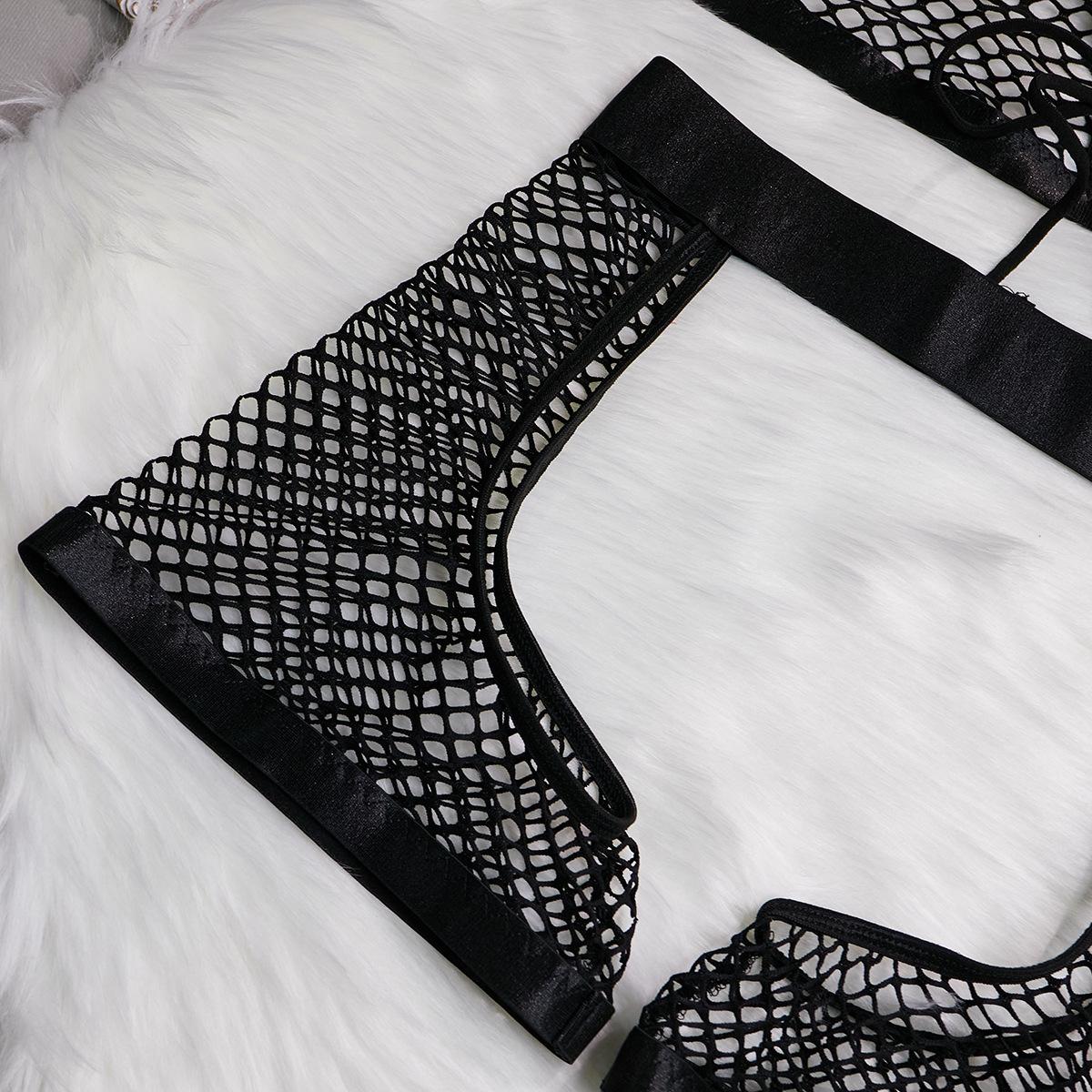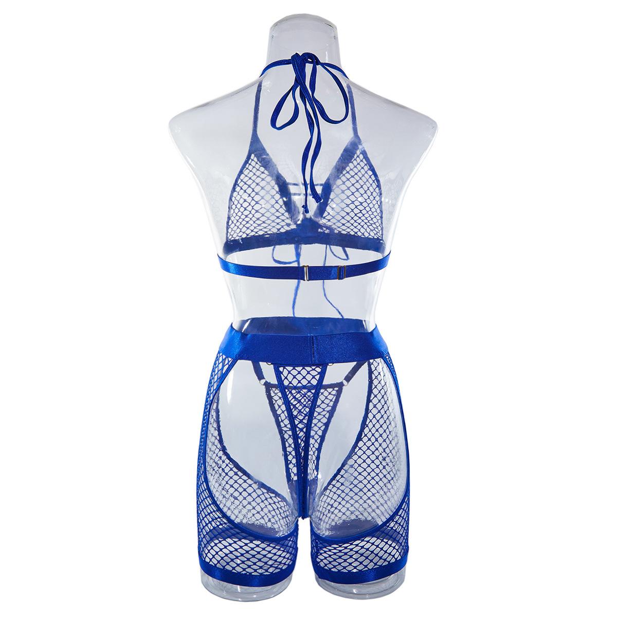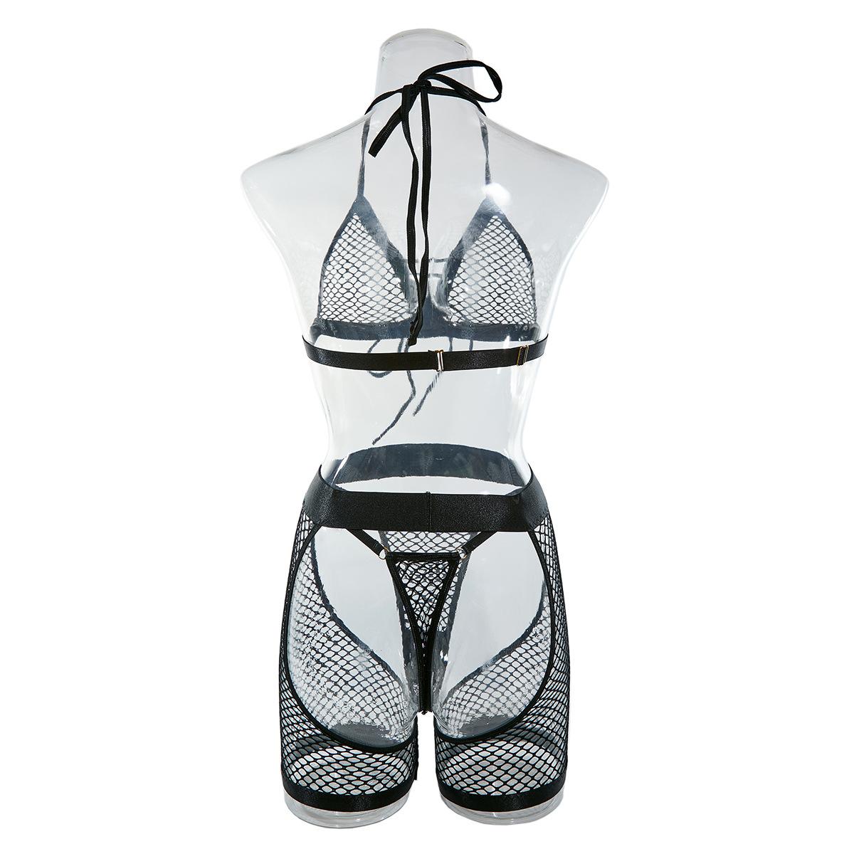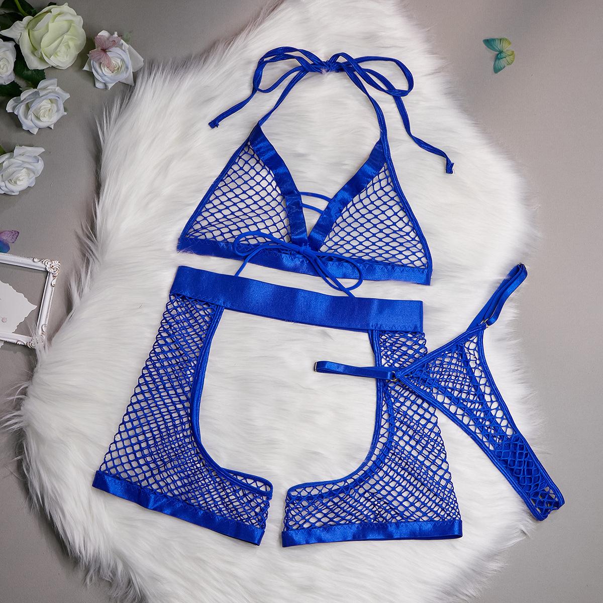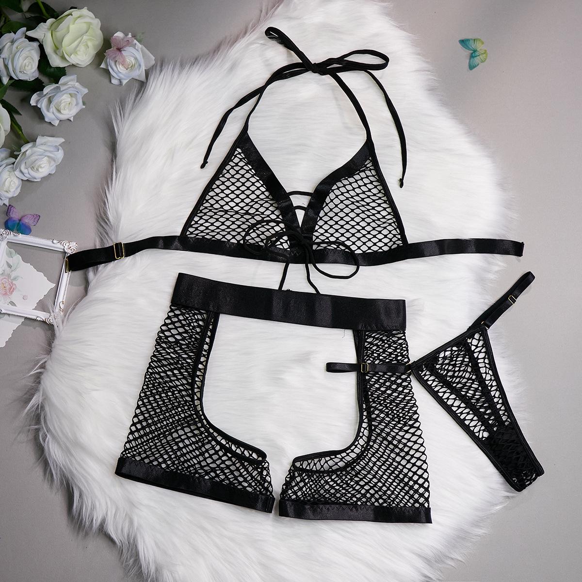 Comércio Exterior Europeu e Americano AliExpress Amazon Hot Sexy Underwear Grid Perspectiva Sexy Soft Conjunto de três peças femininas