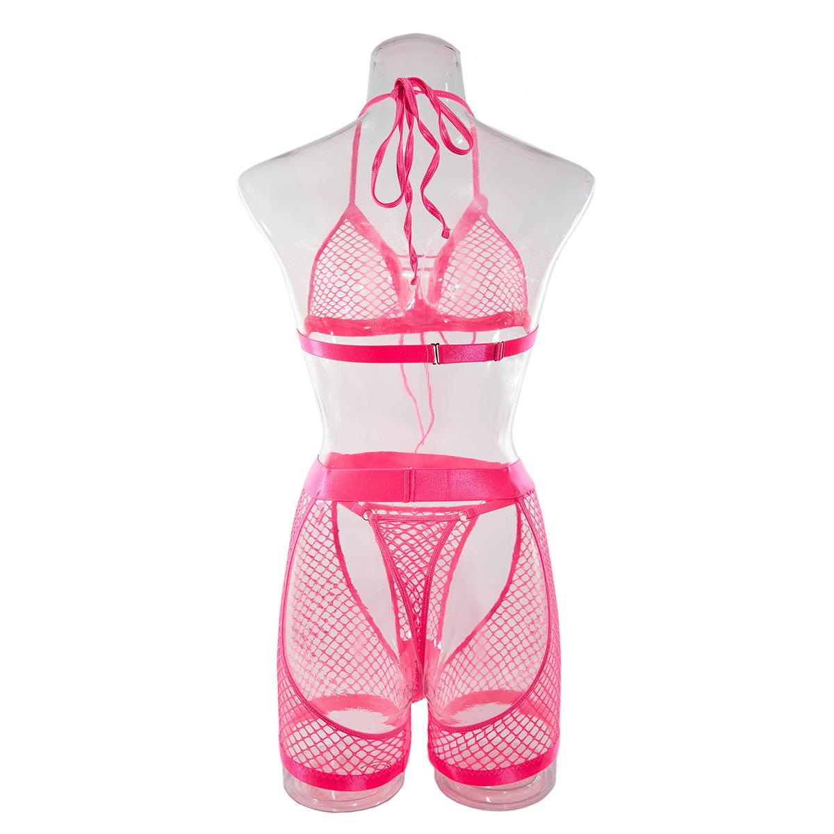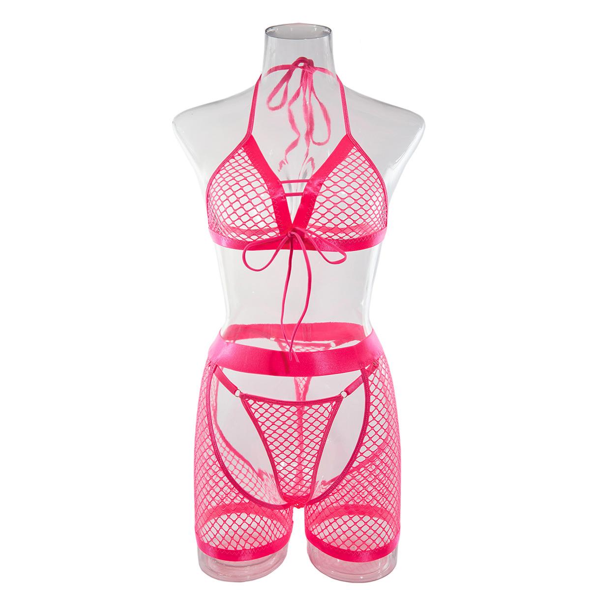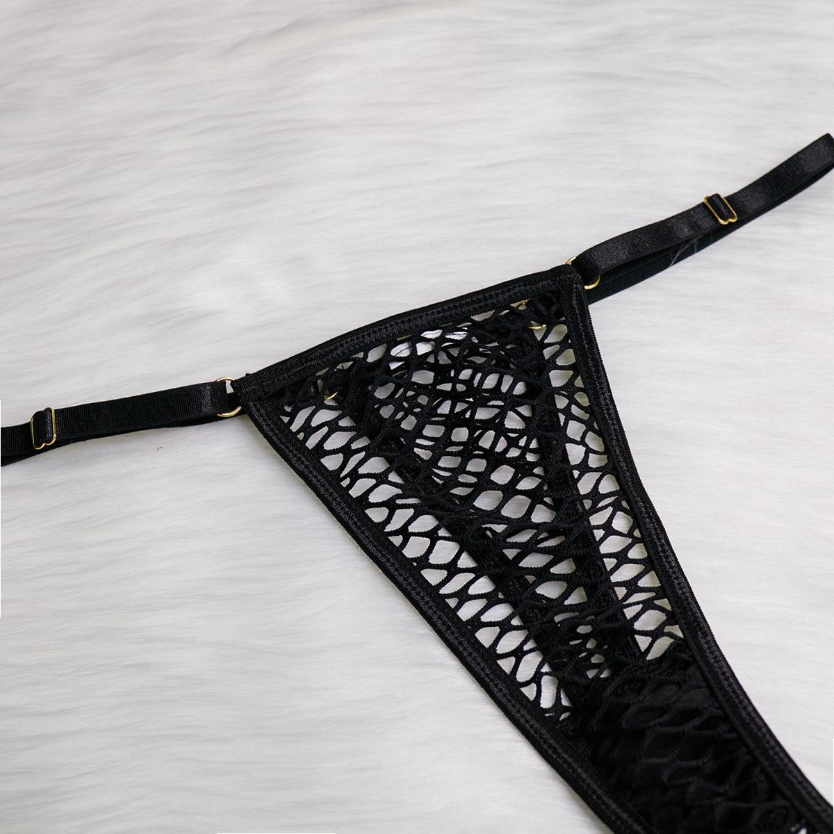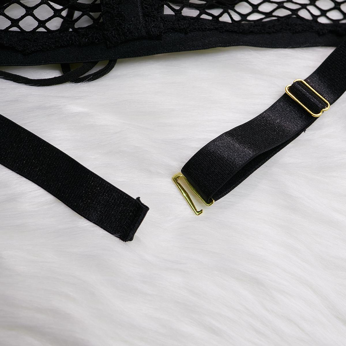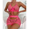 Comércio Exterior Europeu e Americano AliExpress Amazon Hot Sexy Underwear Grid Perspectiva Sexy Soft Conjunto de três peças femininas