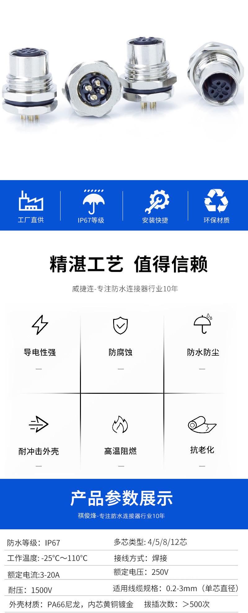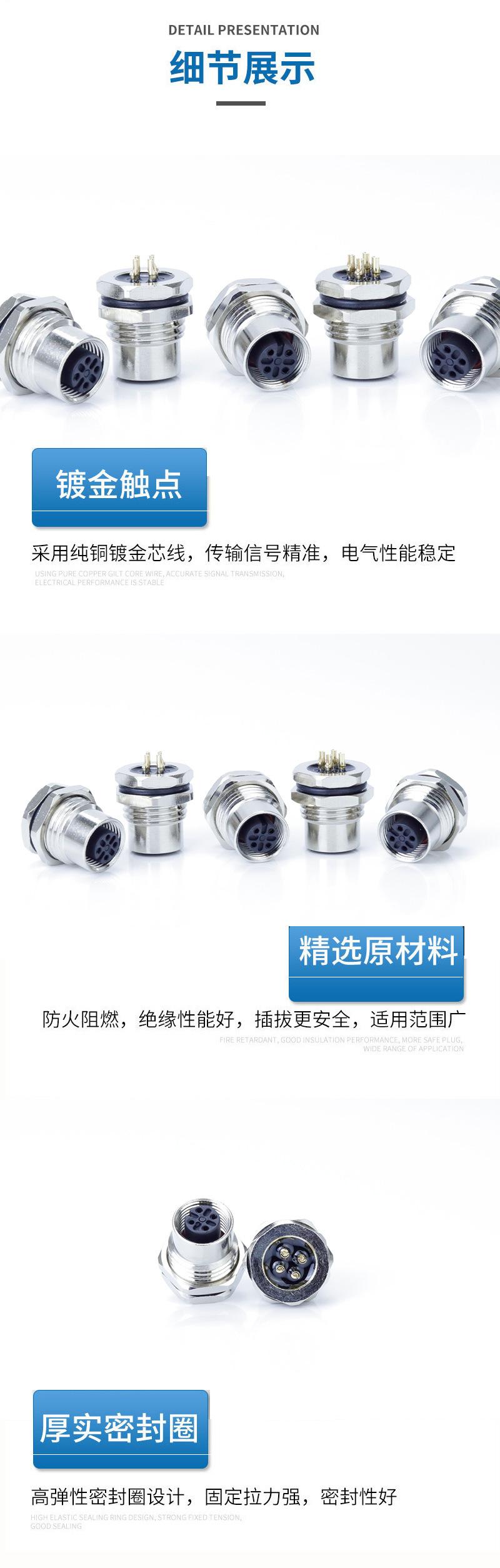 Conector M12 Impermeável Painel Flange 5/8 Abertura 4 Pinos Conector Sensor Macho Plugue de Aviação