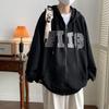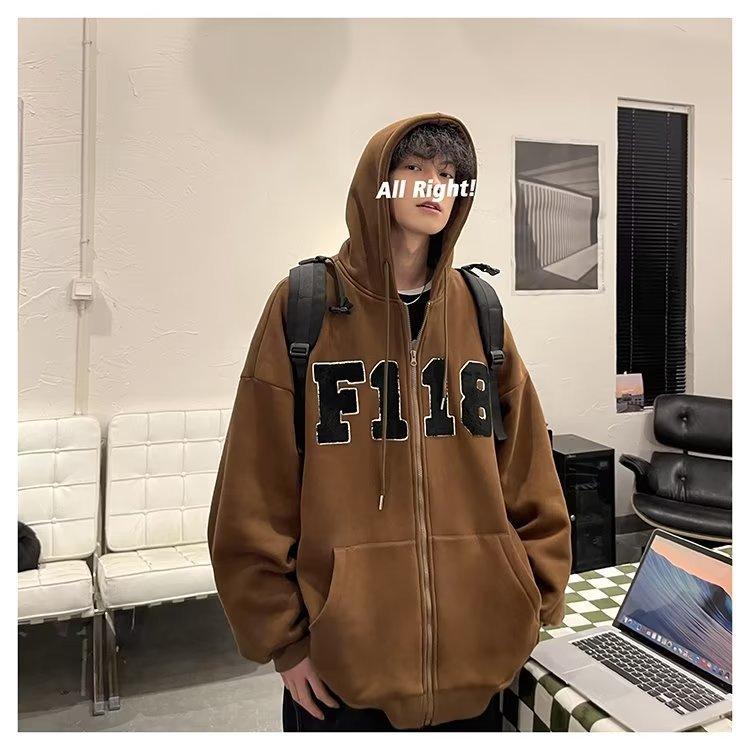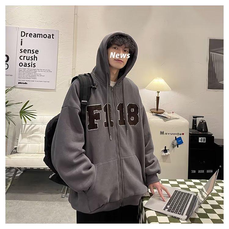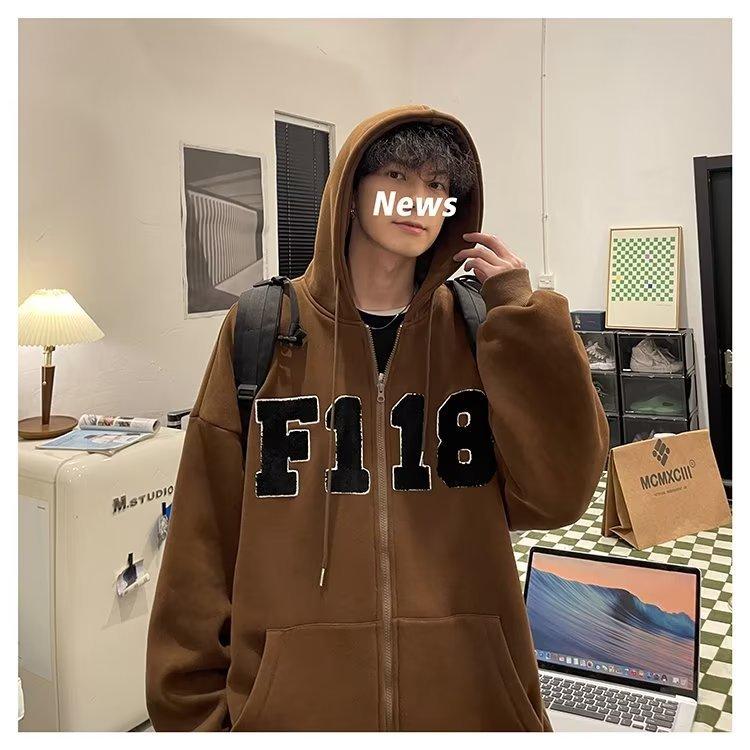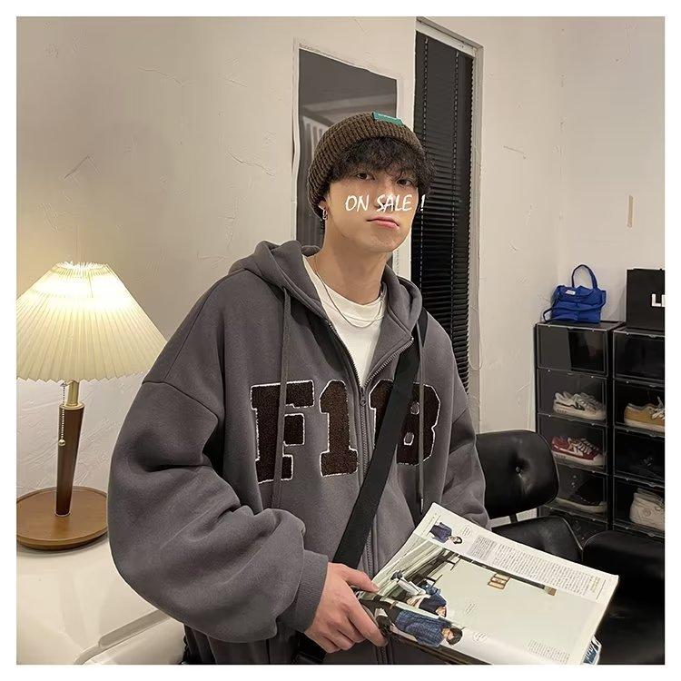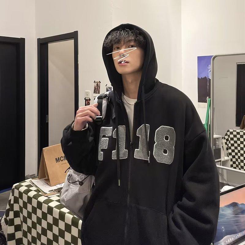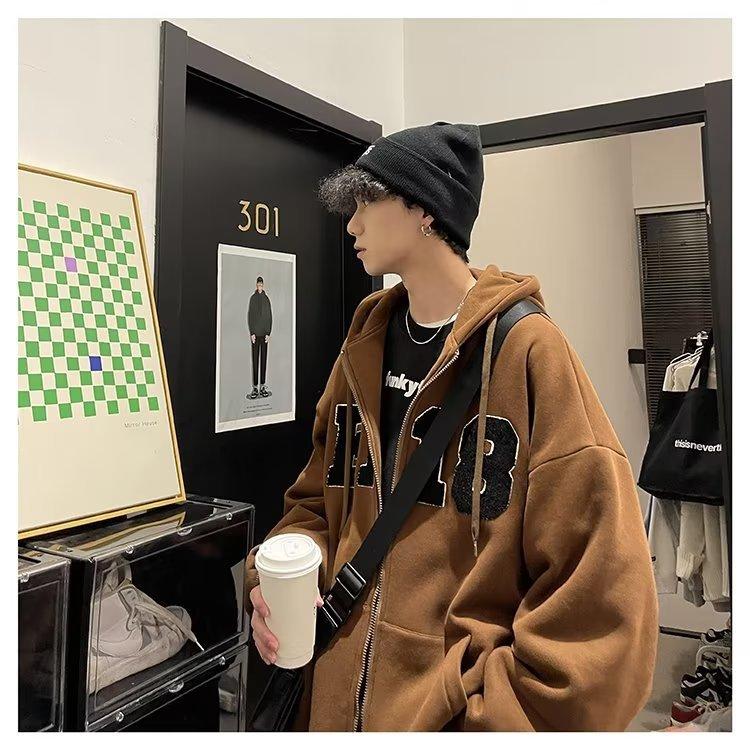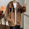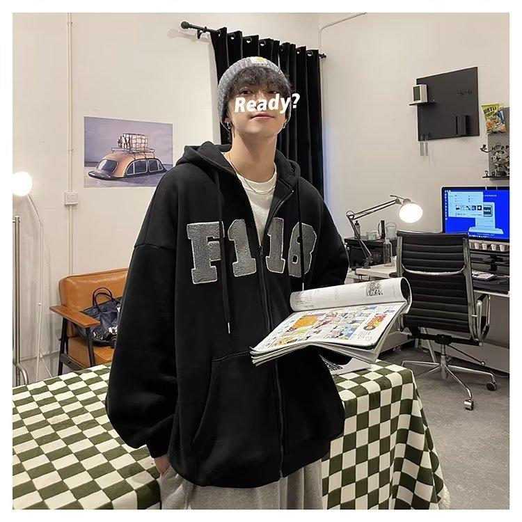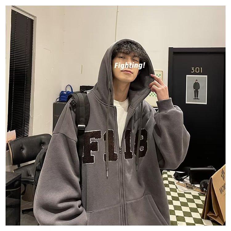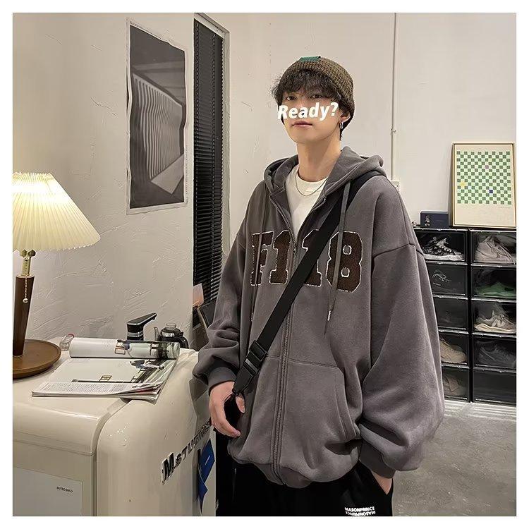 Suéter com capuz masculino estilo americano, moda de rua, outono e inverno, tamanho grande, solto, moderno, versátil, primavera, casaco com zíper