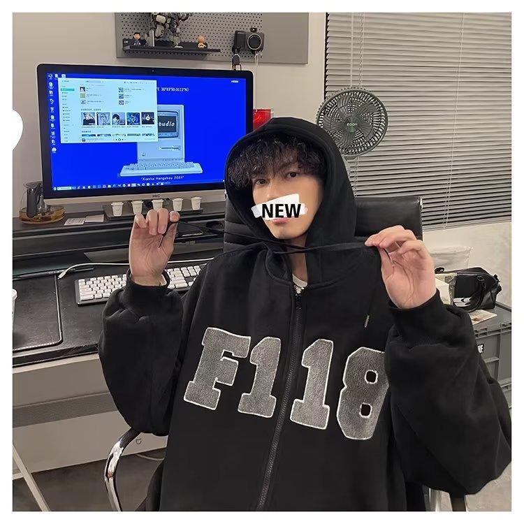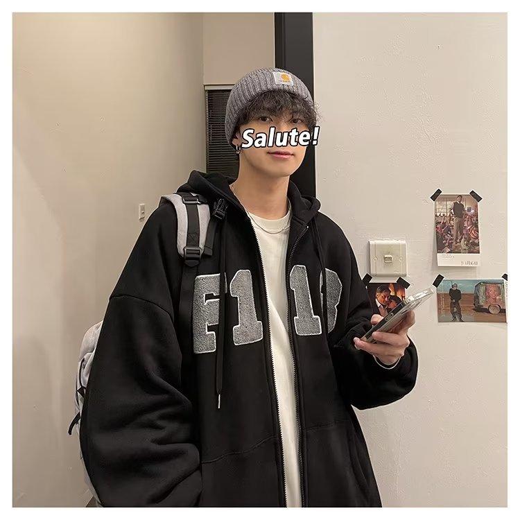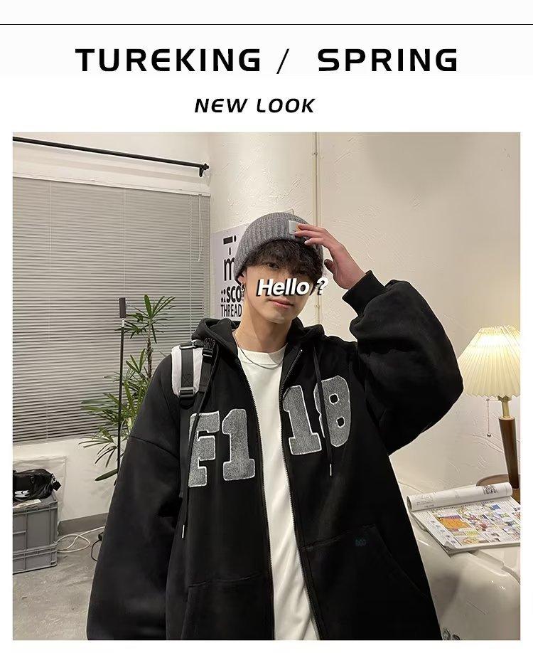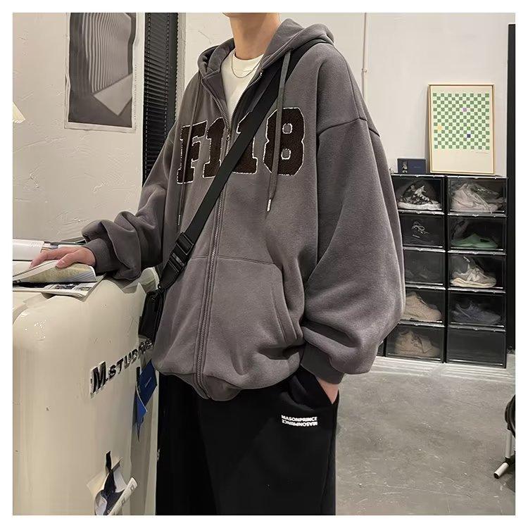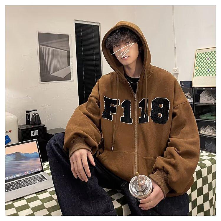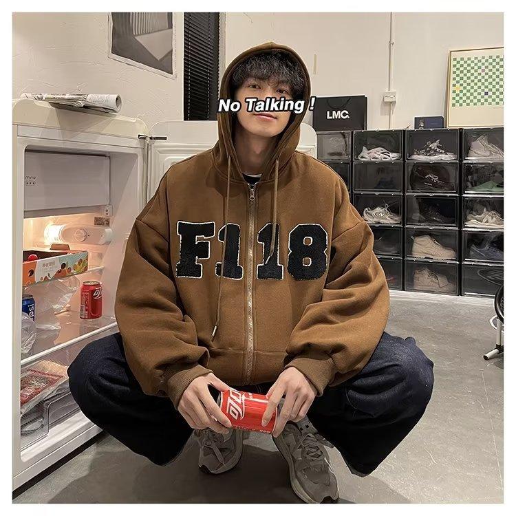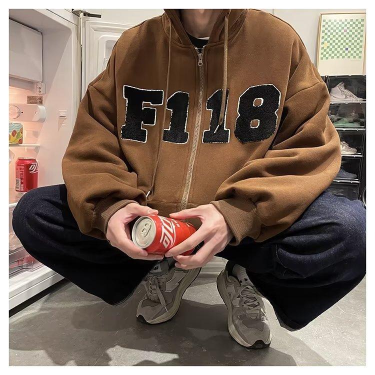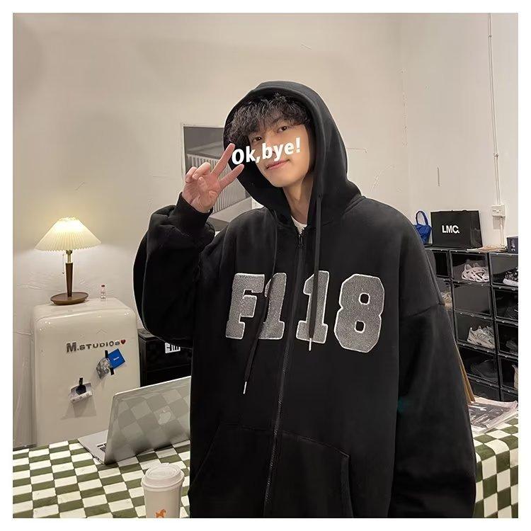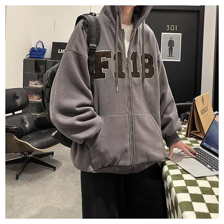 Suéter com capuz masculino estilo americano, moda de rua, outono e inverno, tamanho grande, solto, moderno, versátil, primavera, casaco com zíper