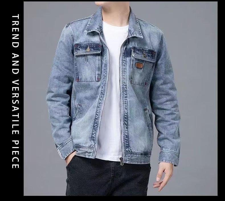 Casaco jeans retrô estilo americano masculino, camisa de lapela de rua alta, jaqueta, primavera e outono, blusa solta