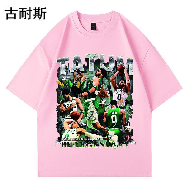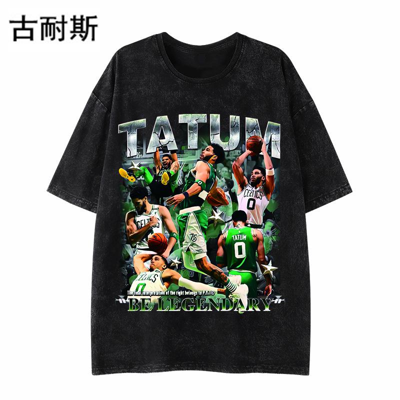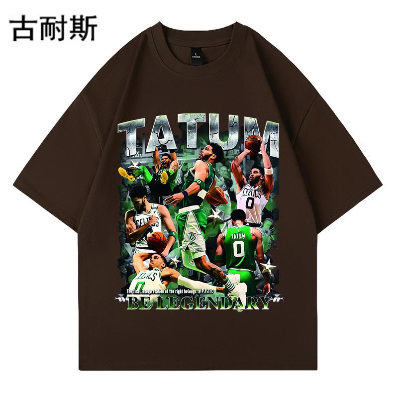 LAZADA Comércio Exterior Nacional Moda Americana Retrô Carta Impressa Camiseta de manga curta Masculino Verão Puro Algodão Moda Solta Marca Top