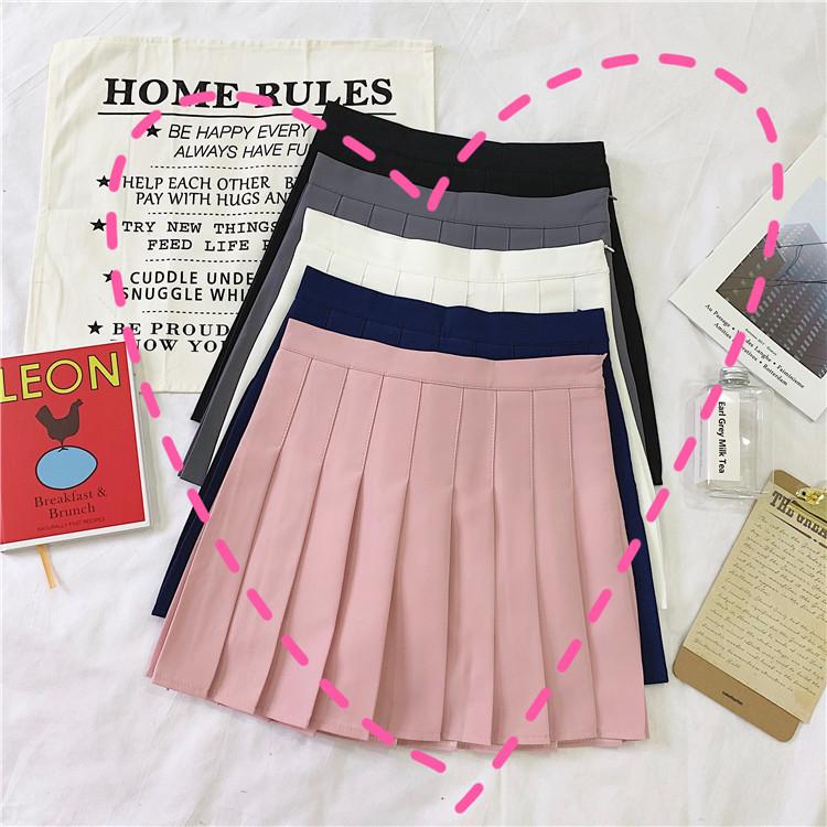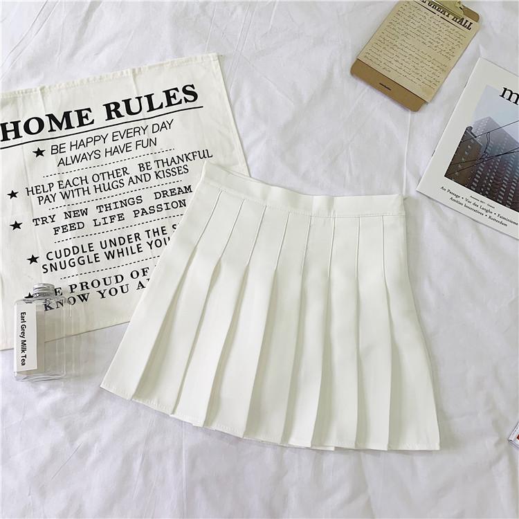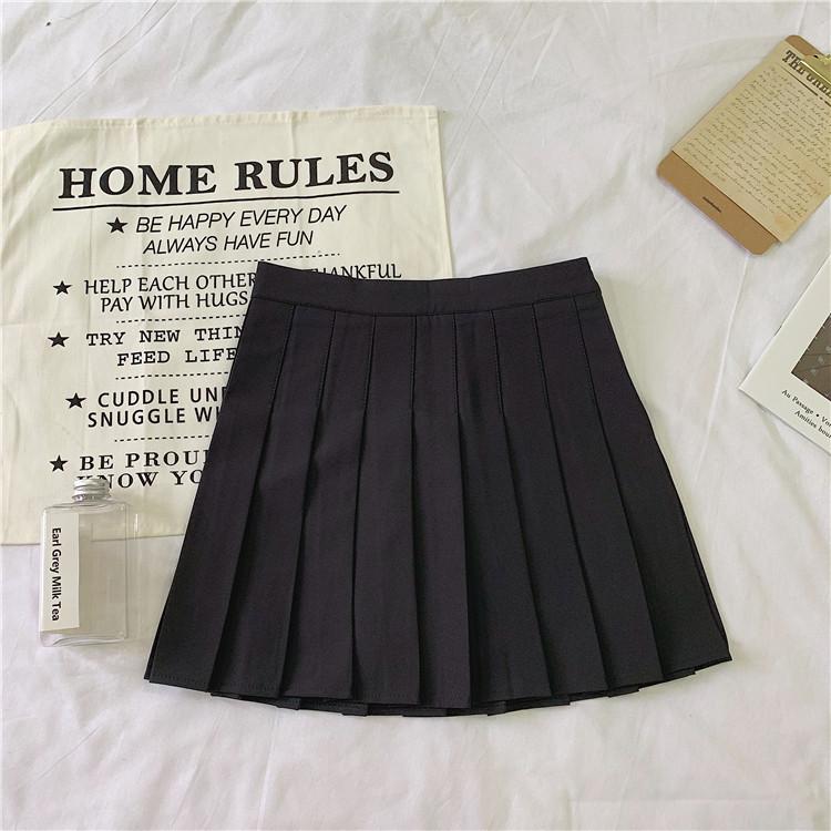 Verão Nova Cor Sólida A-line Saia Feminina Estilo Coreano Saia Plissada Estilo Universitário Estudante Moda Simples Saia de Cintura Alta