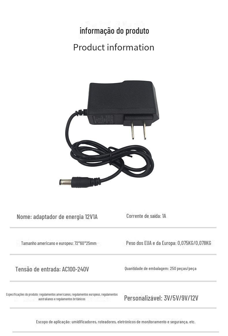 Adaptador de Energia 12V1A Padrão Americano de Fio Duplo 5V1A Fonte de Alimentação Dedicada para Roteador Fonte de Alimentação para Câmera de Vigilância Padrão Europeu