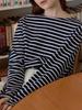 【Promoção de Liquidação】 Camiseta Listrada Color Block, Estilo Coreano, Primavera e Outono, Casual, Solta, Versátil, Blusa de Manga Longa para Mulheres
