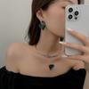 Moda simples romântico azul cristal amor pingente colarinho de alta qualidade elegante design requintado brincos assimétricos