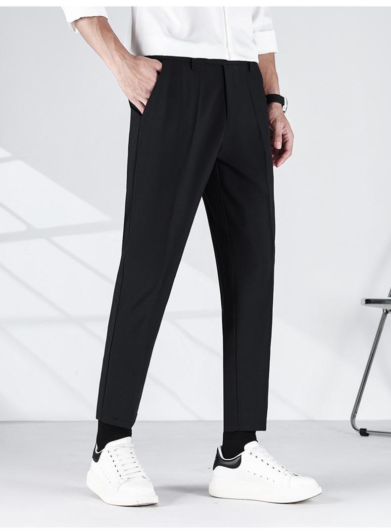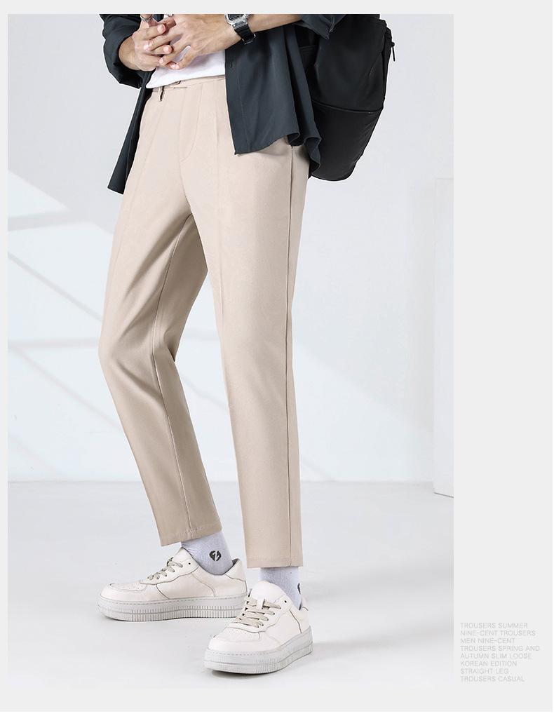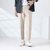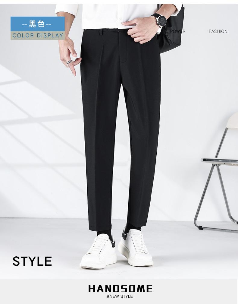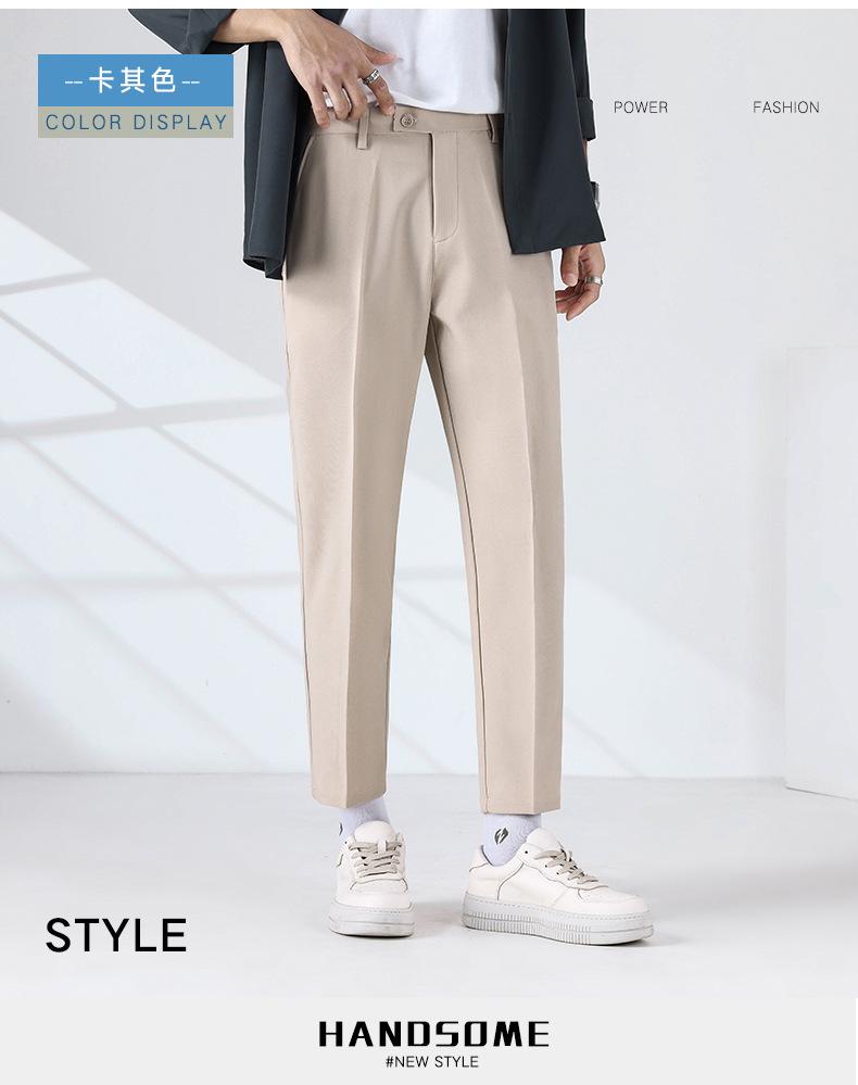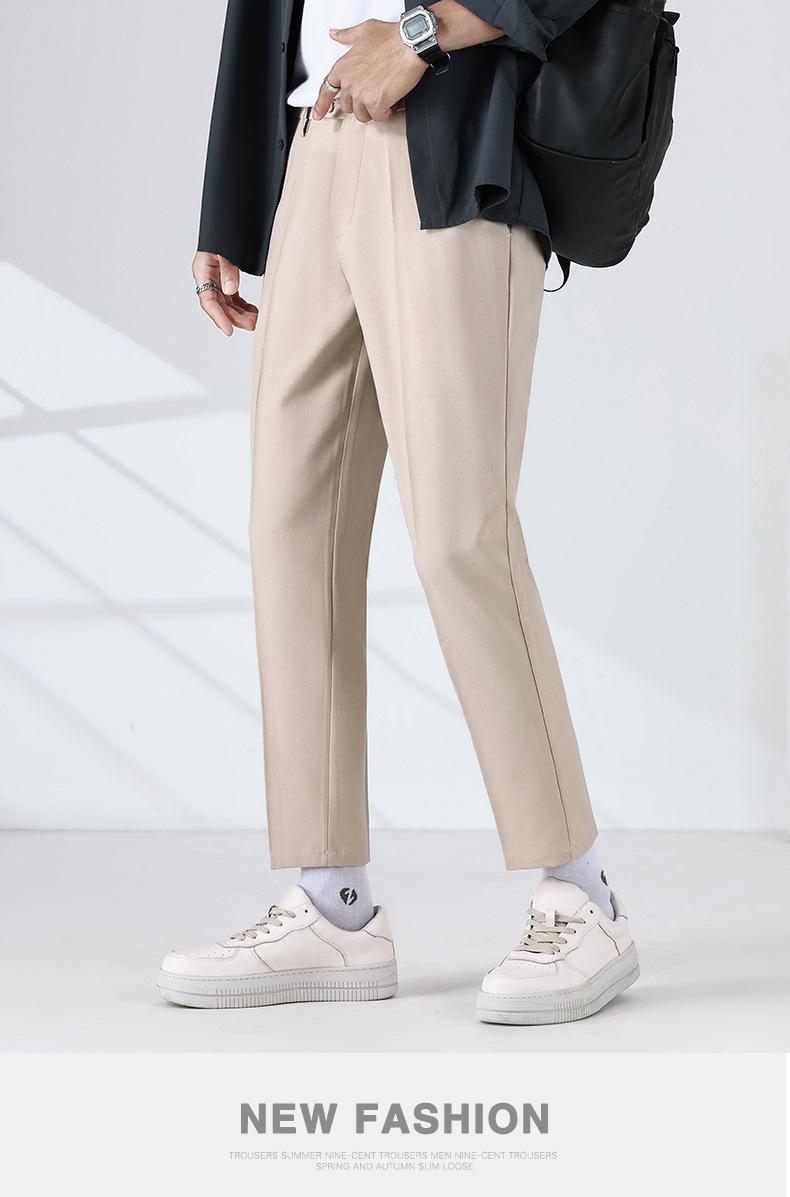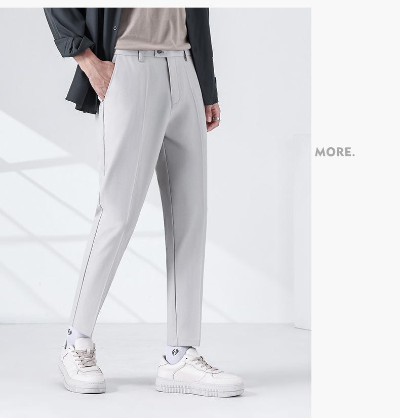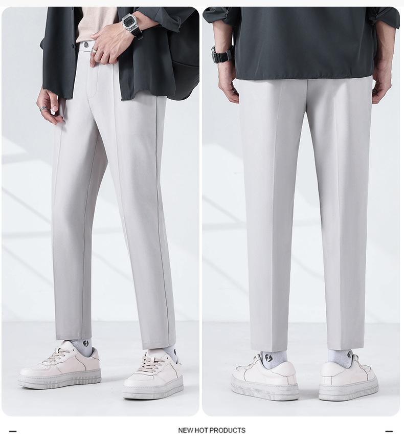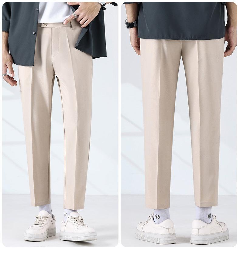 Calças casuais masculinas novas, estilo coreano, retas, slim fit, leves, para negócios, comprimento até o tornozelo, calças de terno britânicas antirrugas
